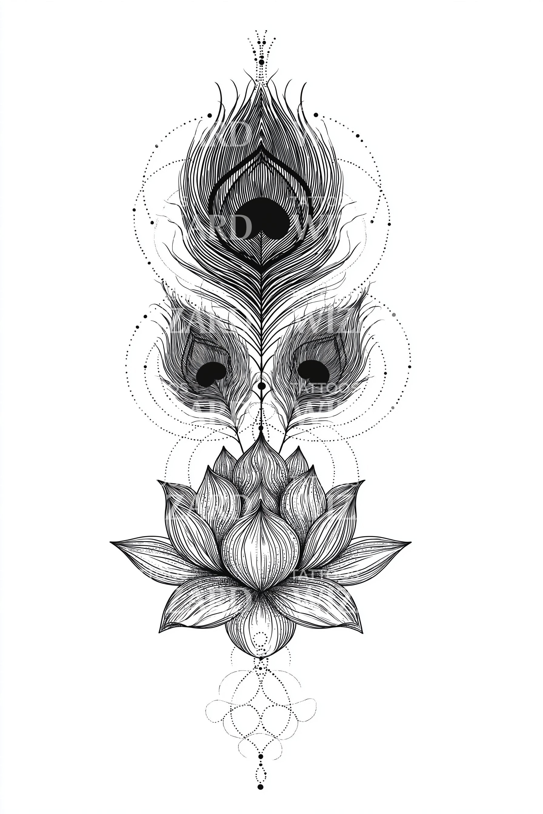 拥抱这款装饰性孔雀纹身设计的优雅魅力。复杂的黑灰色羽毛,融合了羽饰细节,展现了美丽与正直的深刻象征。设计的精致本质使其成为您纹身收藏中的独特之选,增添了一份优雅与活力的象征。