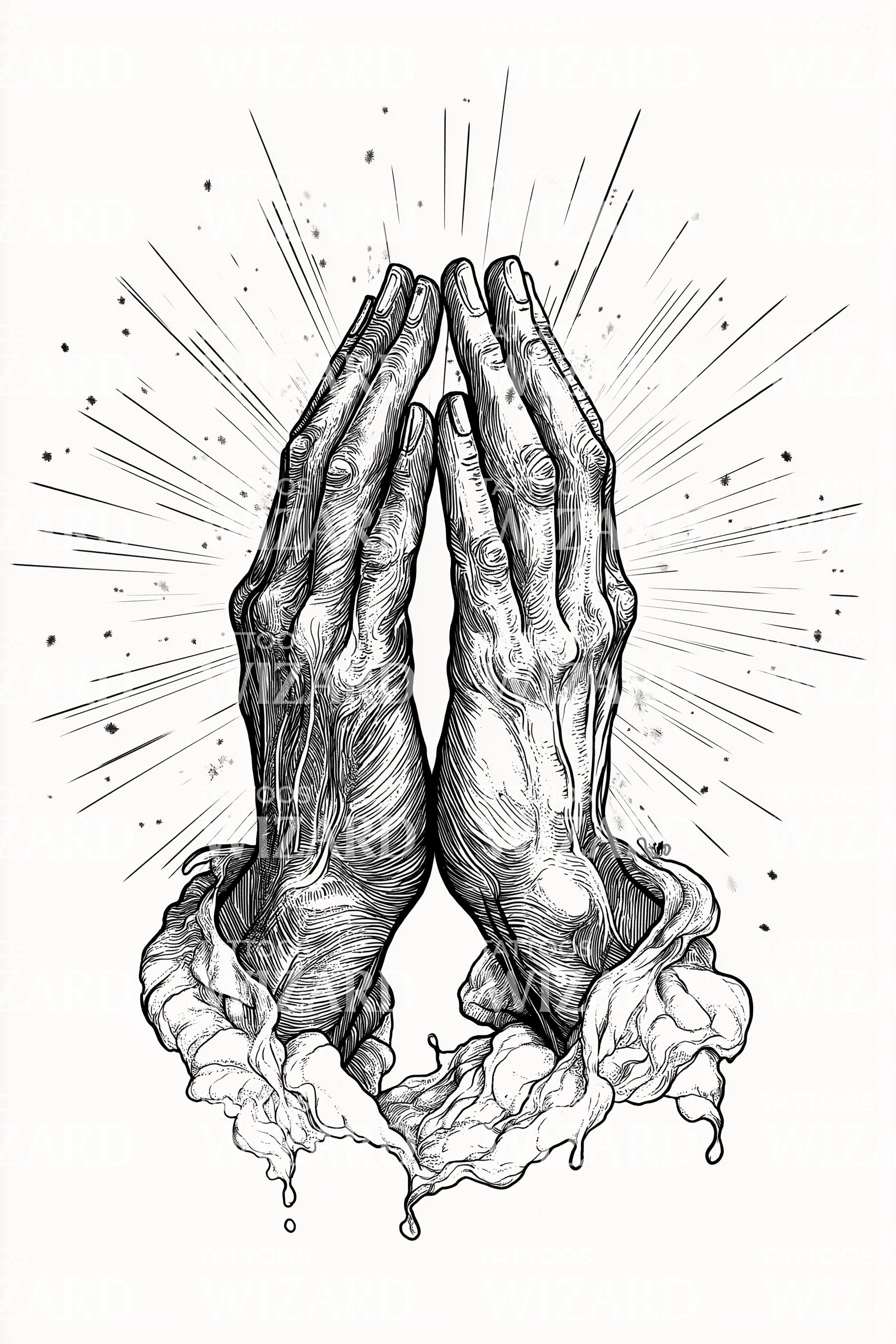 光辉祈祷手纹身设计