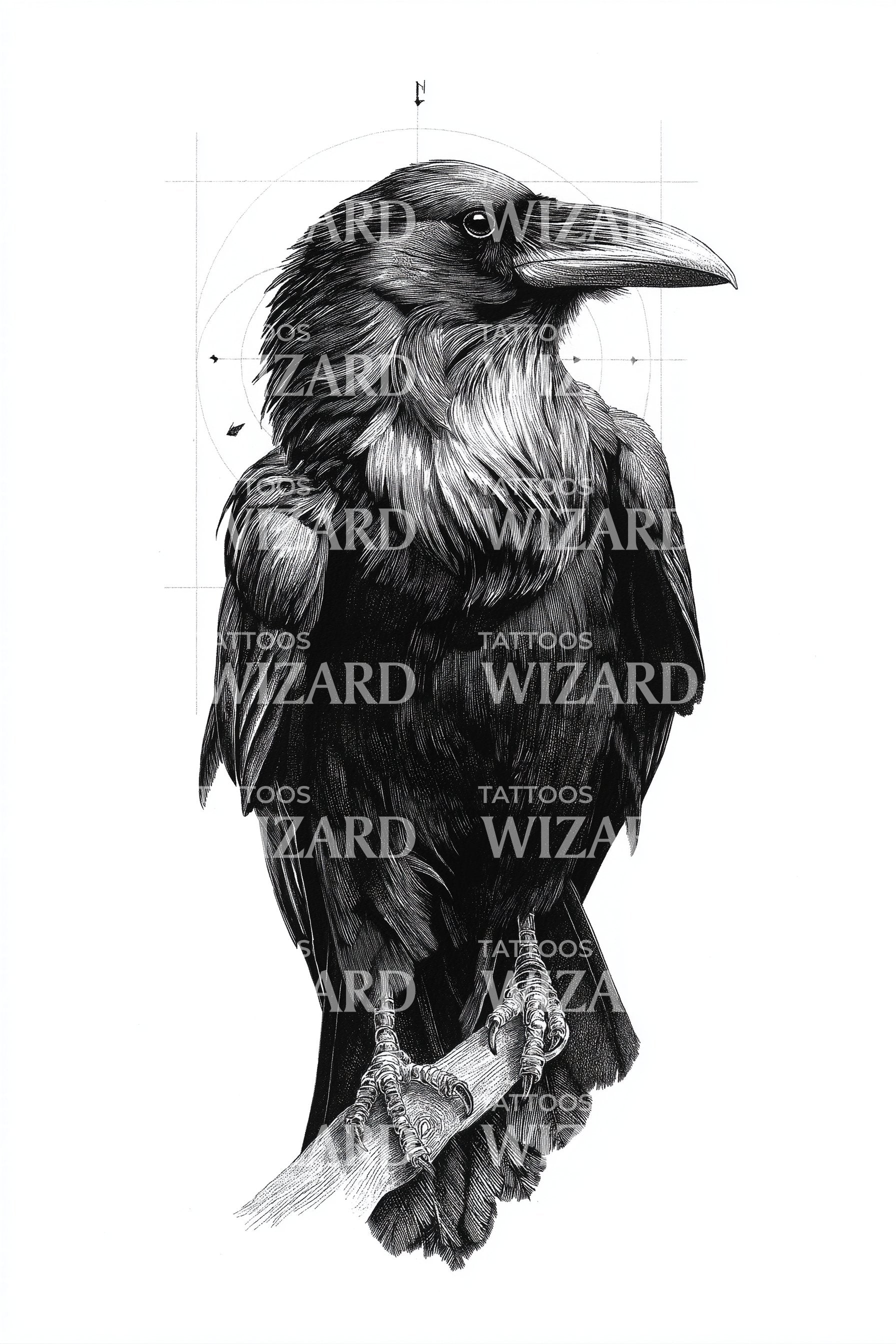 Raven Portrait Shadow Tattoo Design