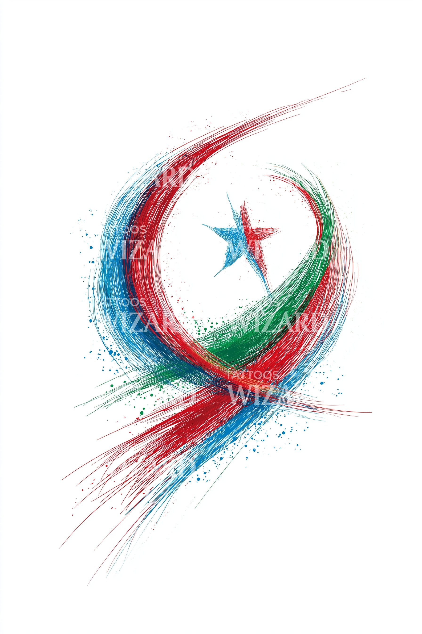 踏上阿尔及利亚丰富文化的旅程,这款精细线条纹身设计展现无遗。以星月符号为核心,巧妙缠绕着鲜艳红绿丝带,彰显民族自豪感。以细腻而醒目的细节,完美诠释你对阿尔及利亚的热爱,令人惊叹。