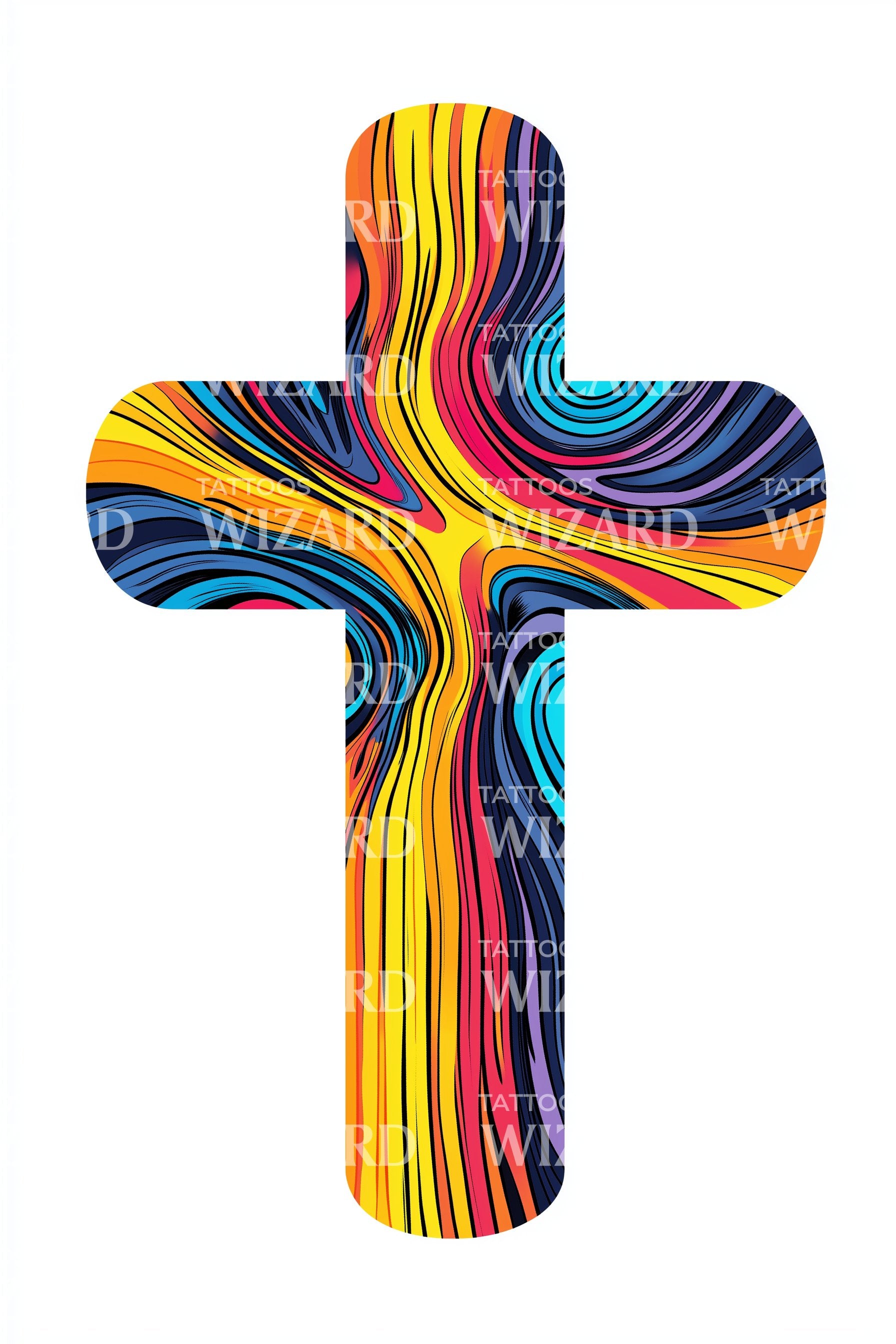 体验这款新潮纹身设计带来的信仰与色彩的爆发。迷幻的波浪穿过鲜艳的彩虹十字,包裹着明亮、生动的色调。作为坚定信仰的见证,它展现了大胆的色彩和充满活力的设计。传统与艺术自由的完美融合。