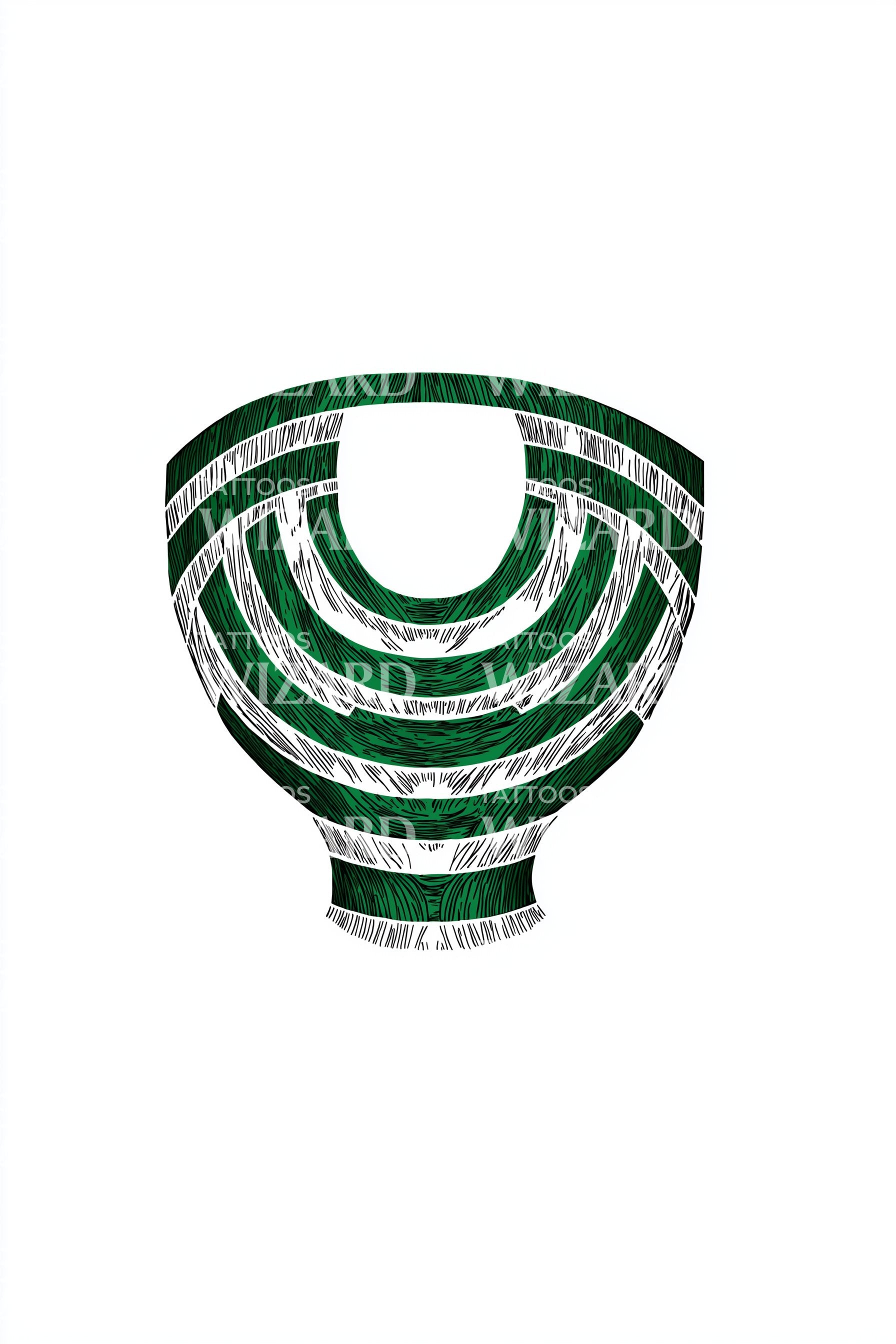 用这款几何纹身设计装饰你的身体,灵感源自尼日利亚标志性的徽章。设计采用浓郁的绿色调,呈现出与国旗相呼应的象征性圆圈。这款纹身是爱国情怀与极致风格的创意表达。