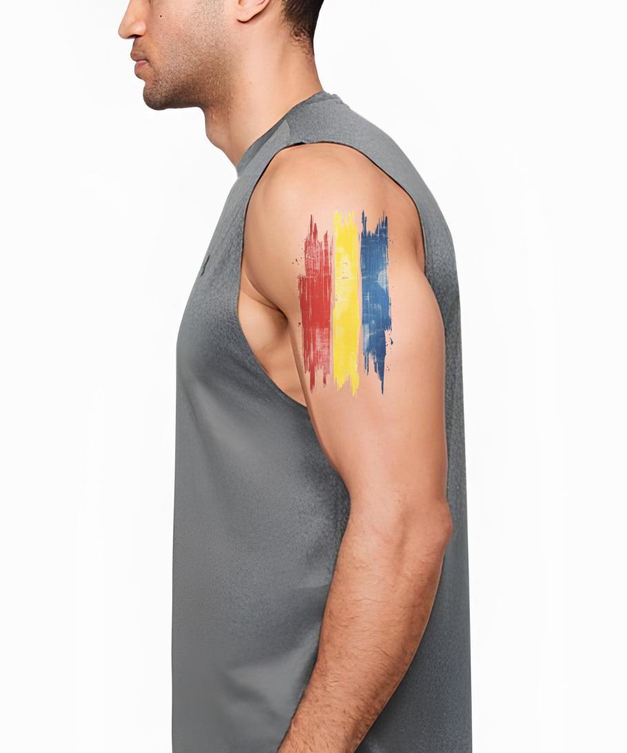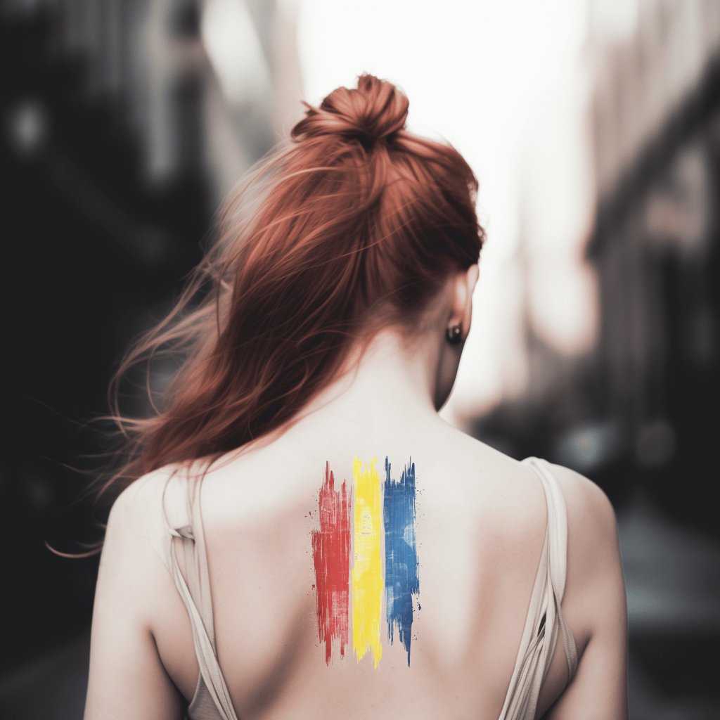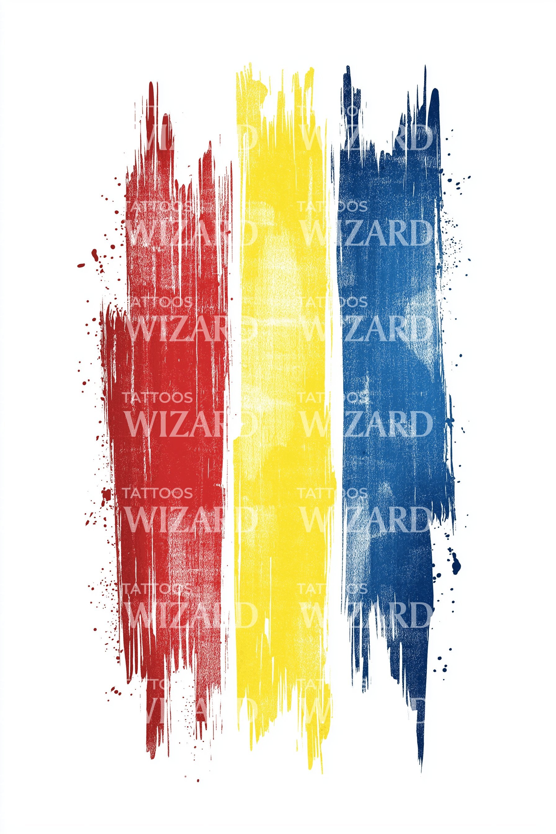 用这款充满活力的水彩纹身设计展示你对罗马尼亚的热爱。细腻的笔触展现出生动的蓝色和黄色,巧妙地再现了国旗的色彩。融入“绘画”风格,赋予其独特的美感,使其成为爱国情怀的独特表达。