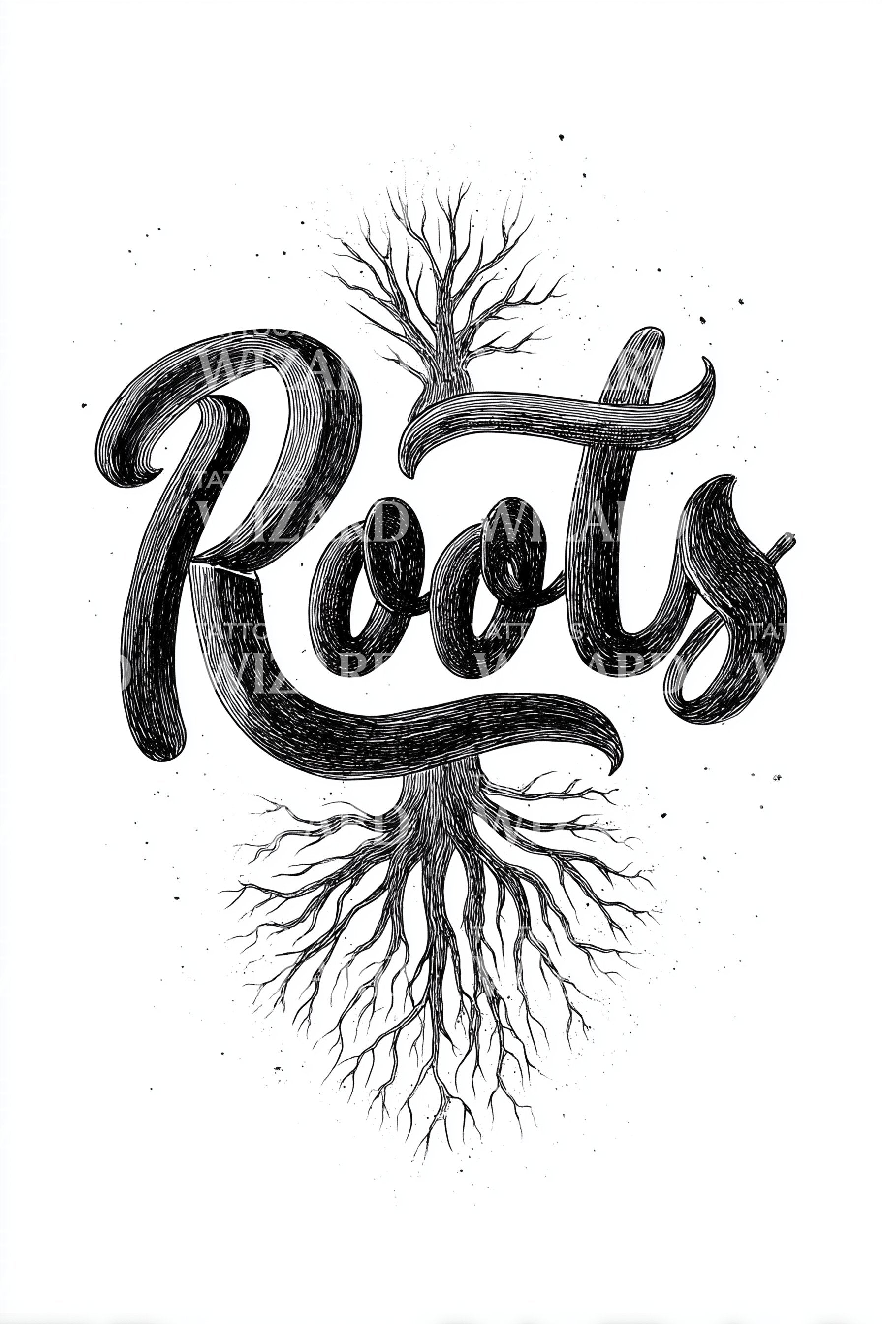 Roots Word Veins Tattoo Design