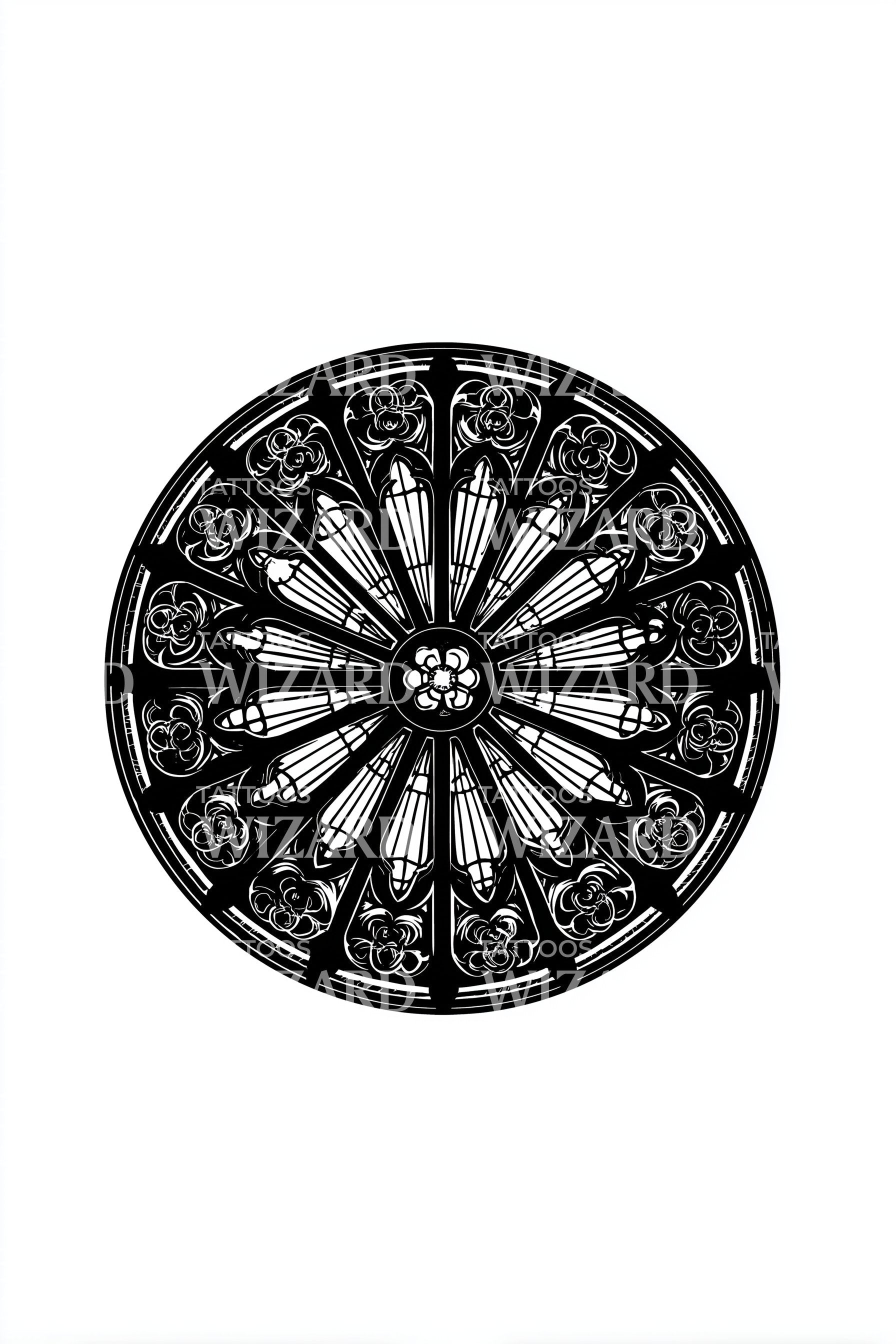 这款复杂的曼陀罗纹身设计汲取了中世纪美学的灵感,采用结构化圆形内的玫瑰花纹图案。其华丽如石雕般的细节散发出皇家魅力,确保引人注目。它是传统与艺术的和谐融合,完美适合任何被动态象征吸引的人。