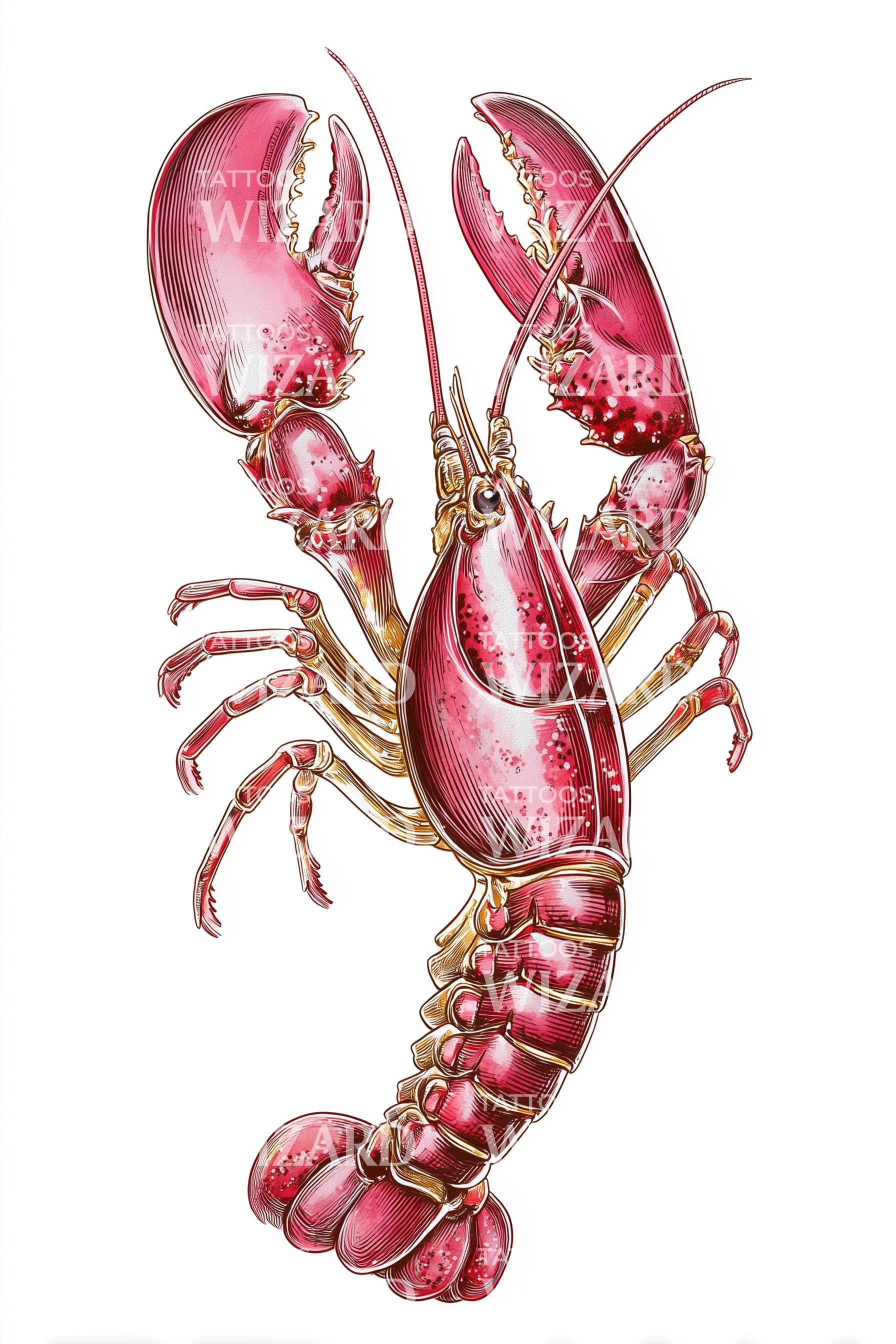 释放你对海洋的热爱,这款写实风格的龙虾纹身设计充满细腻的细节,描绘出一只镶嵌着闪耀红宝石的生动甲壳类生物。用这件迷人的艺术作品,将你对海鲜的热情真切地展现在手臂上,象征着神秘深海的魅力。