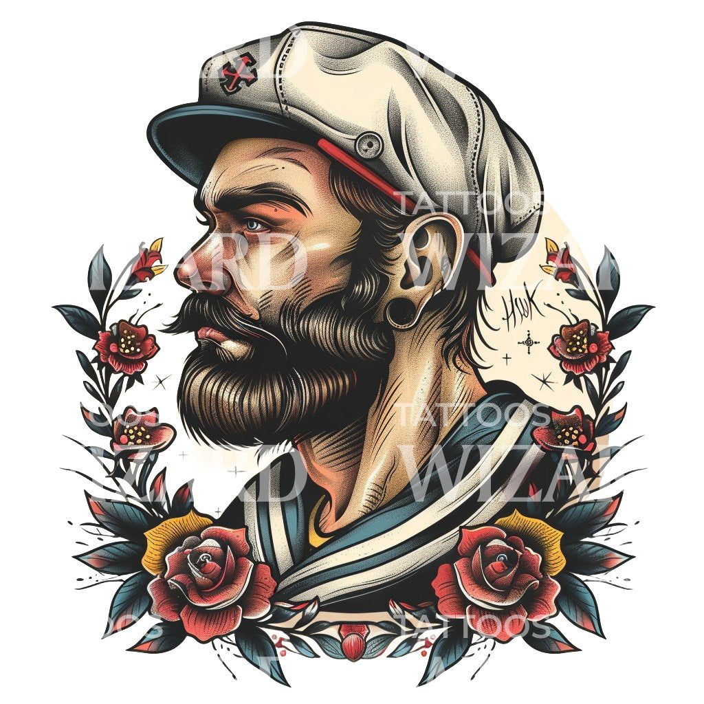 体验一场海洋之旅,尽享我们的老派纹身设计。让你内心的水手觉醒,设计中有一位勇敢的胡子男人与海洋元素相伴,经典玫瑰环绕其间。由著名纹身艺术家Marie精心设计,这一作品完美诠释了开放海洋的精神。