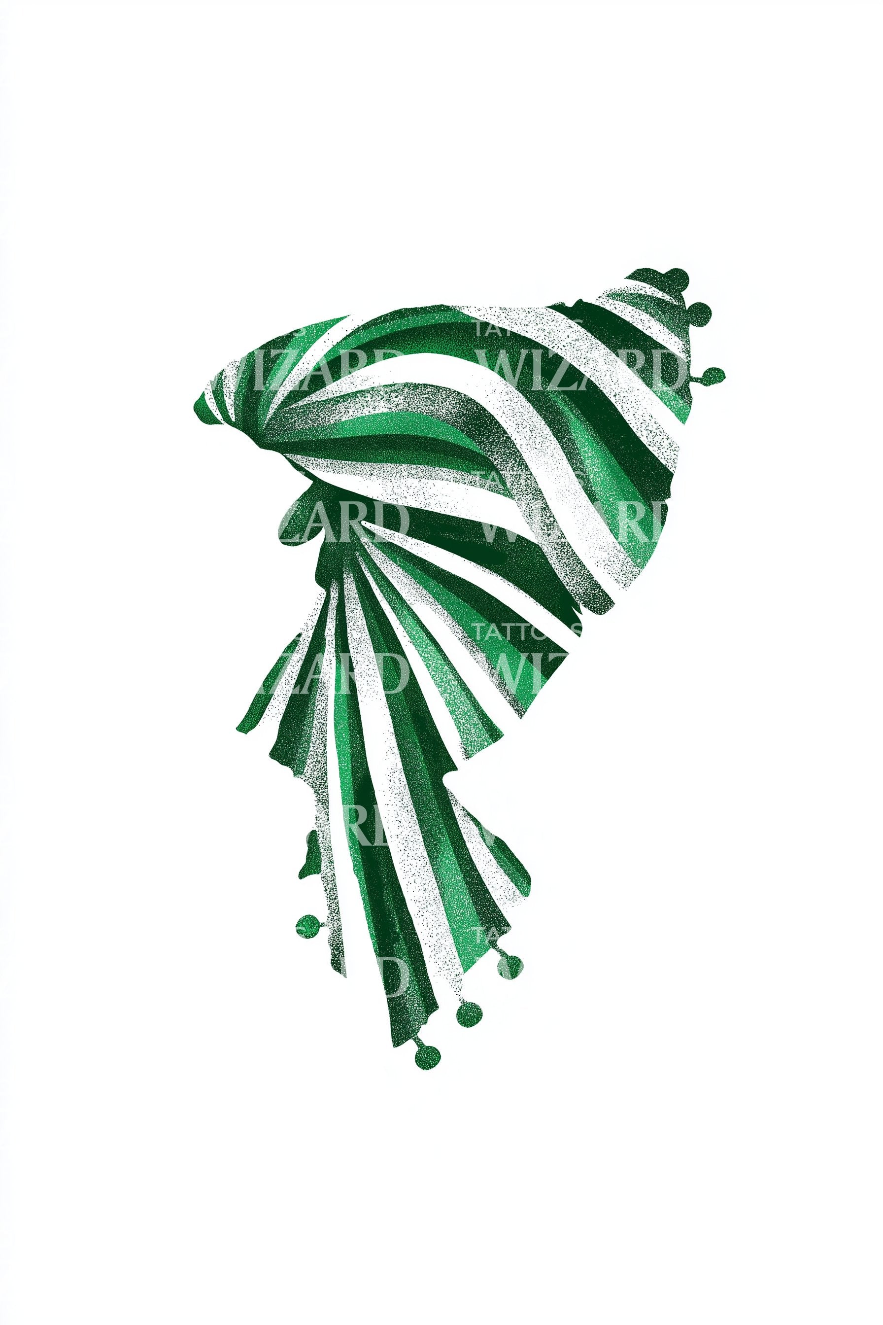 沉浸于沙特文化,这款独特的水彩纹身设计以鲜艳的绿色丝带与阿拉伯头巾交织,呈现沙特国旗的形象。它是象征意义与艺术性的美丽融合,优雅地表达了民族自豪感。