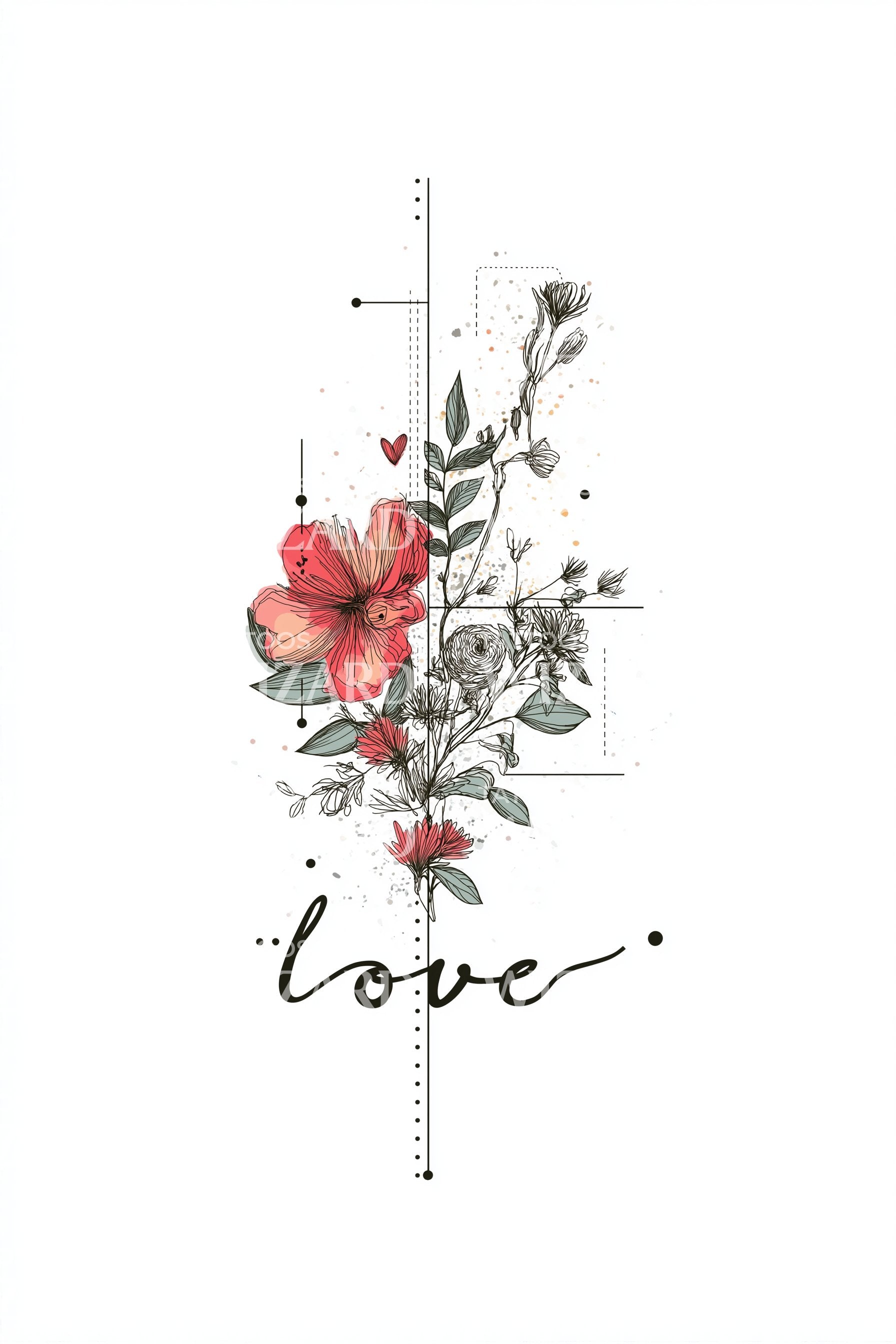 沉浸于我们浪漫水彩设计的魅力中,设计以爱情主题的文字为特色。猩红色调优雅地相互渗透,象征着激情与深情。我们的垂直布局赋予纹身独特而大胆的气质,完美适合那些希望用纹身表达爱意的人。