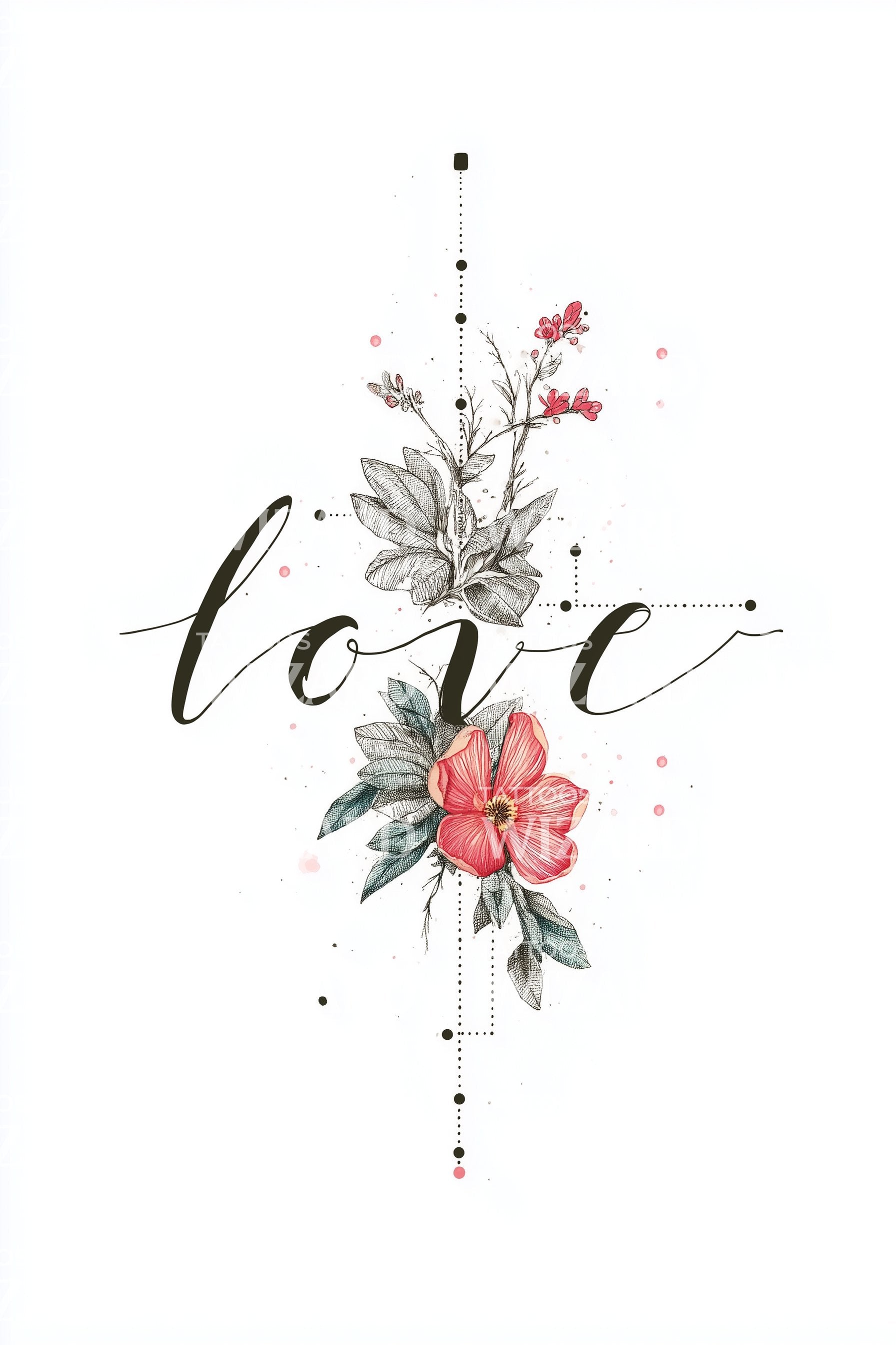 沉浸于优雅之中,这款精美的水彩纹身设计精心打造,展现玫瑰的空灵之美。爱的表达以细腻的书法与花卉元素交织成形。这是一件完美融合浪漫、艺术与精致的永恒之作。