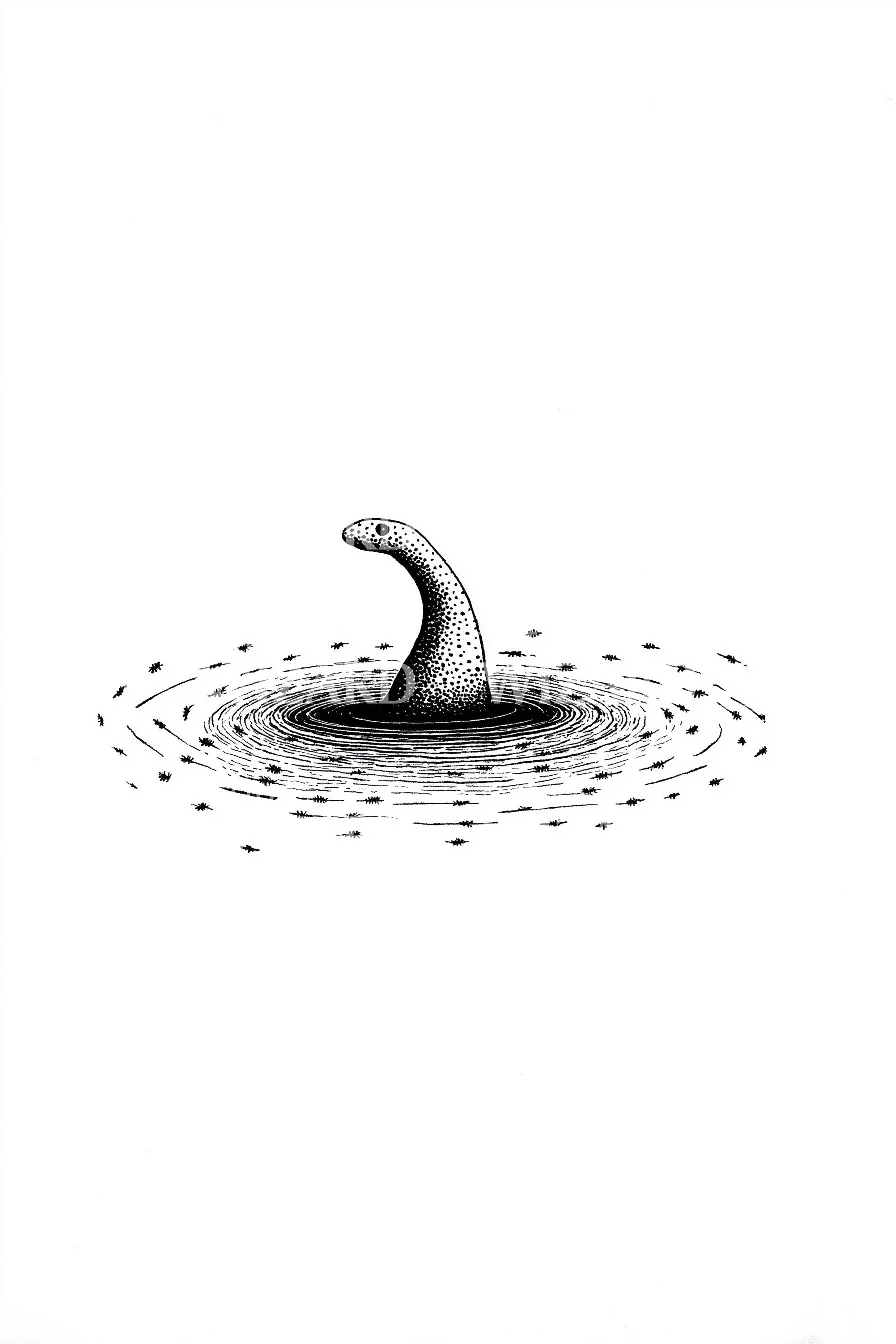 墨点点缀的海蛇从波纹环中轻轻抬起脖颈,这是一只极简主义的怪兽,尾巴隐藏在海洋的宁静之下。它象征着好奇与坚韧,致敬我们勇于面对的神秘。佩戴者感受到内心的无声勇敢。理想位置:前臂内侧、小腿、肋骨或上背部,适合垂直升起和居中旋转的设计。