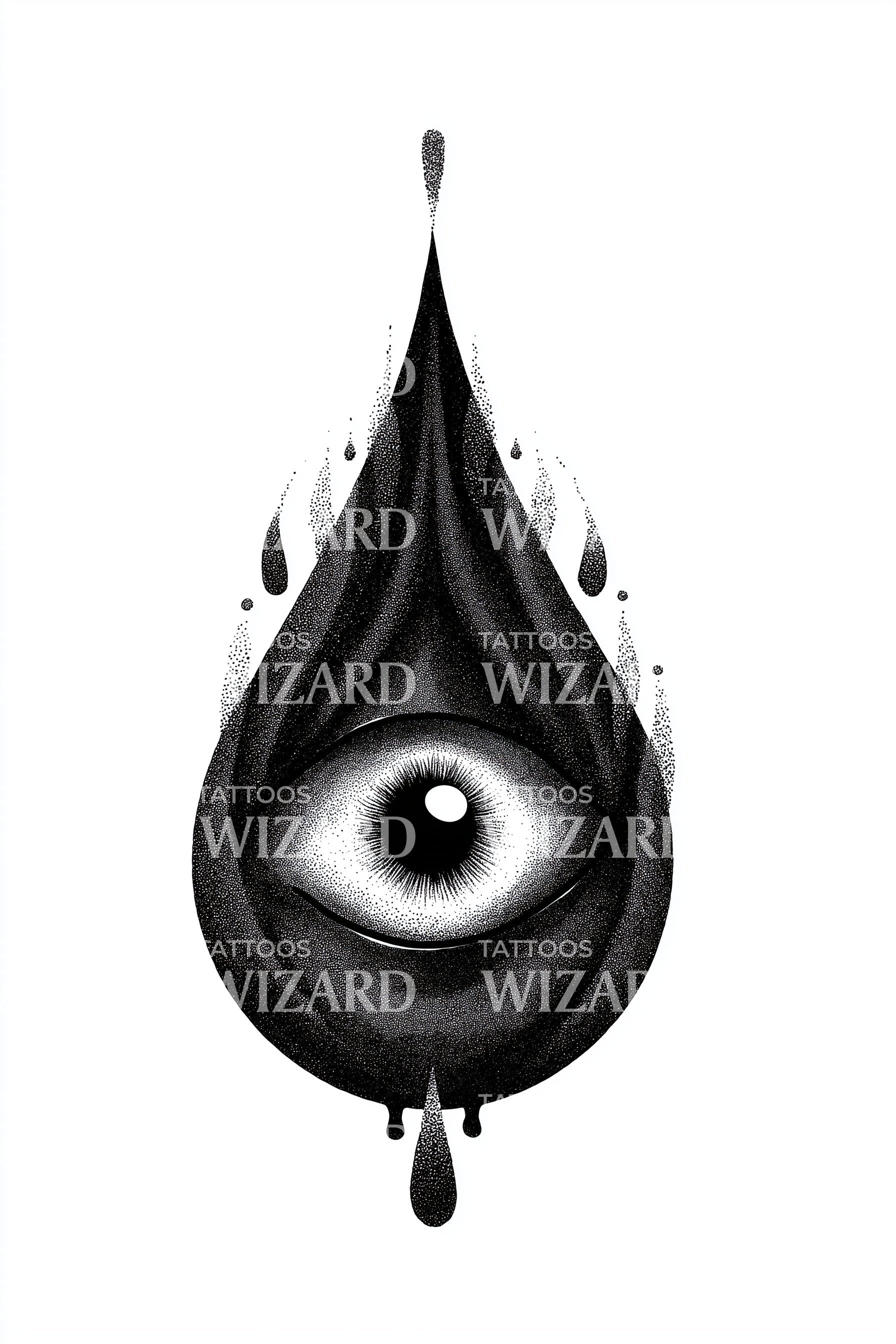 沉浸于神秘主义的世界,这款引人注目的黑色纹身设计。以一只流下一滴泪的全视之眼为特色,象征着洞察力和理解力。这件神秘而迷人的作品,非常适合那些被生命中神秘面向吸引的人。