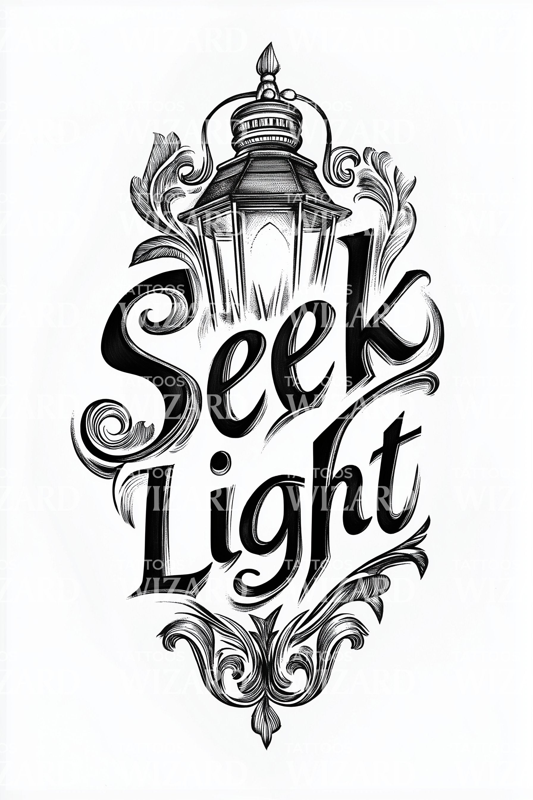 Baroque scrollwork cradles a vintage lantern, its etched glow curving around bold serif letters reading Seek Light. The lantern acts as a pocket lighthouse, a beacon through fog, guiding choices toward hope. Wearing it feels steady and brave, a personal compass to rise, continue, and shine each day.