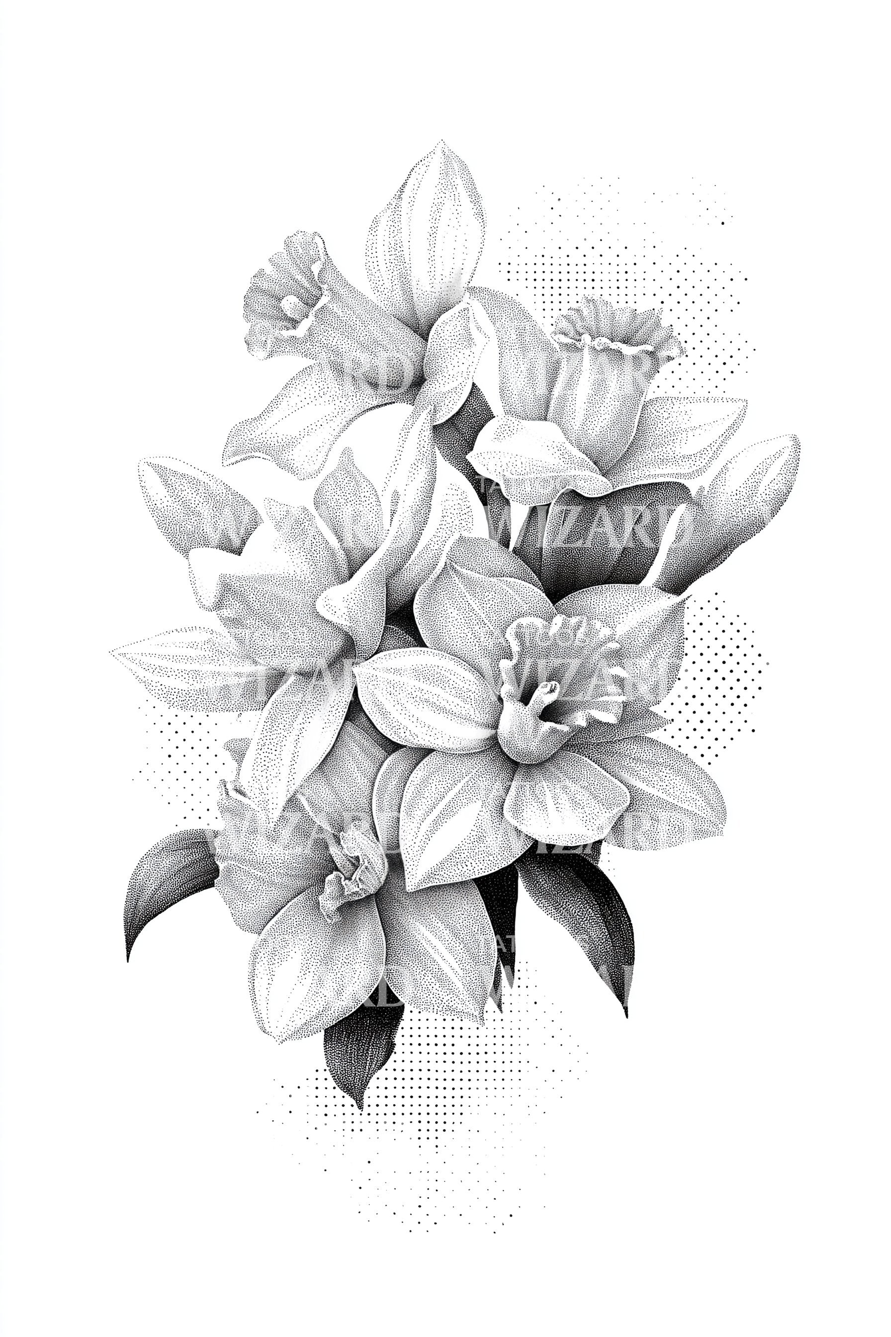 这款精美制作的黑灰纹身设计展示了一簇迷人的鸡蛋花。每片花瓣都细致地描绘了阴影层次,以最优雅的方式增强其逼真外观。作为一件完美的植物杰作,这款花卉设计体现了自然对称的独特美感。