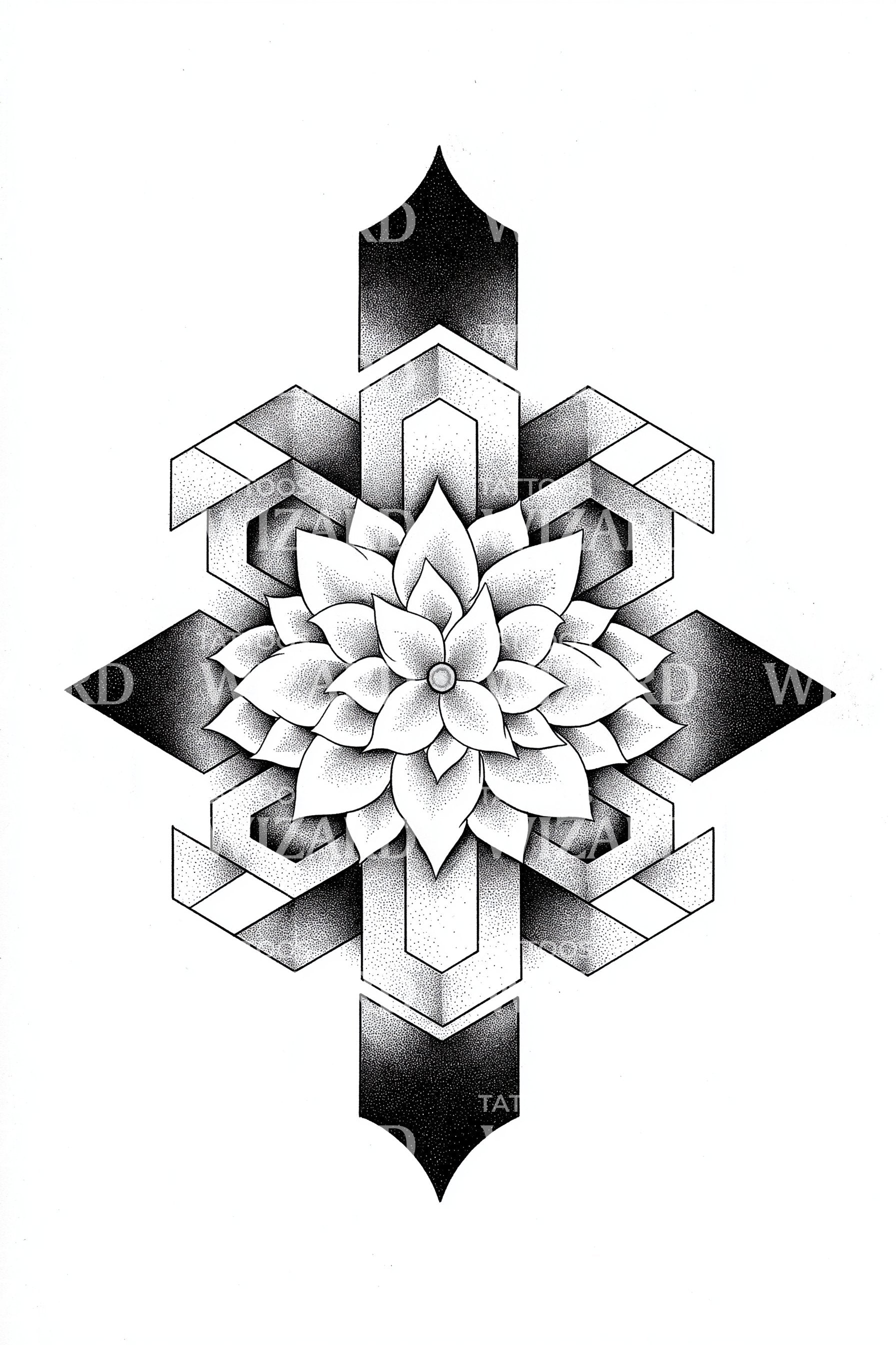 这个独特的纹身设计融合了阴影与几何,放大了黑色工艺莲花的优雅。一朵花朵编织成复杂的形状,设计突显了莲花与升华之间的象征联系,唤起强烈而神秘的气息。非常适合喜爱象征性和迷人身体艺术的你。
