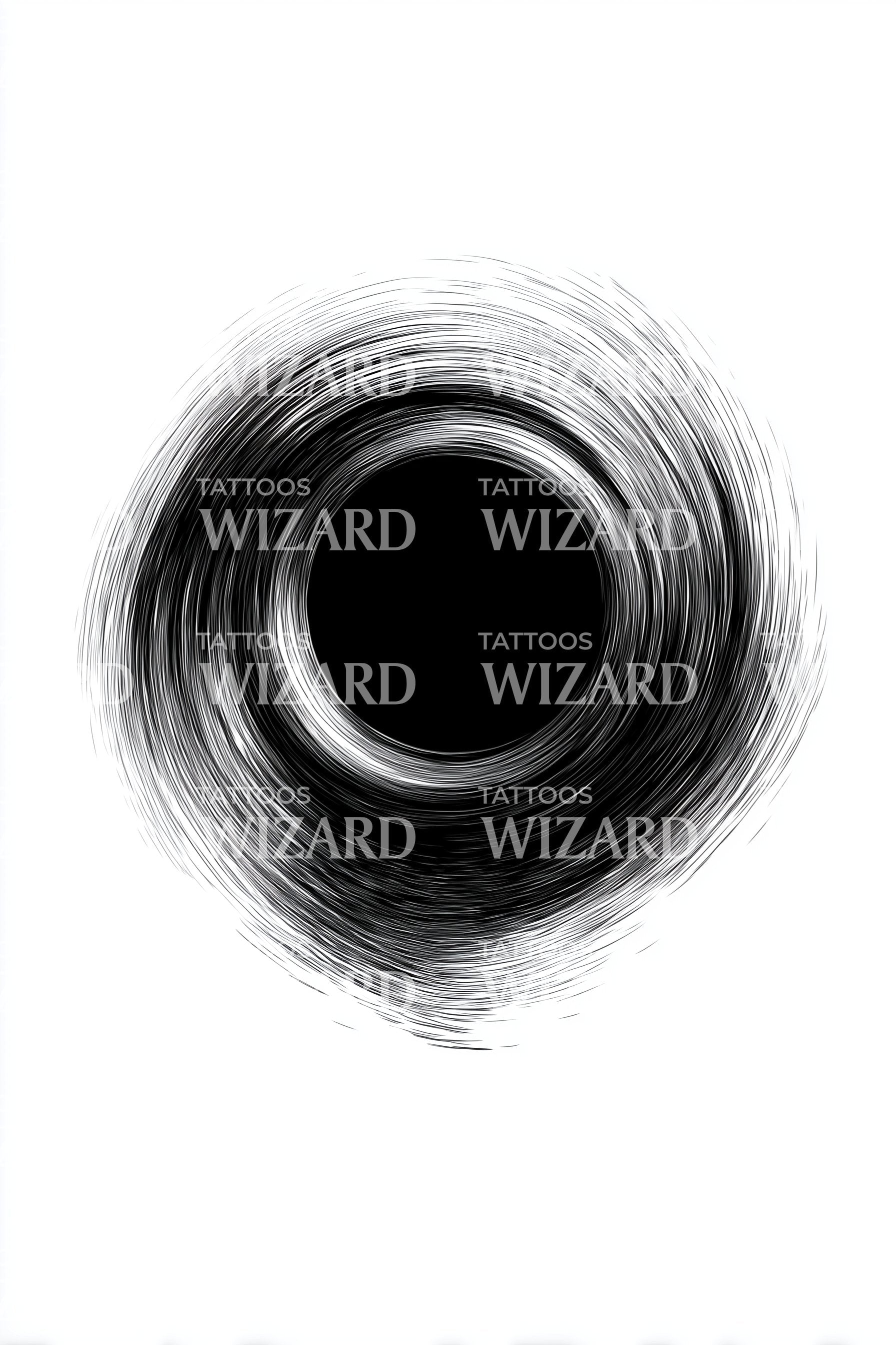 Black&grey strokes whirl into a maelstrom, a storm of fine lines forming a circle around a deep shadowed orb. The void symbolizes inner gravity, drawing chaos into purpose and change into calm. Wearing it feels dynamic and centered, a personal reminder of resilience, focus, and fearless momentum.