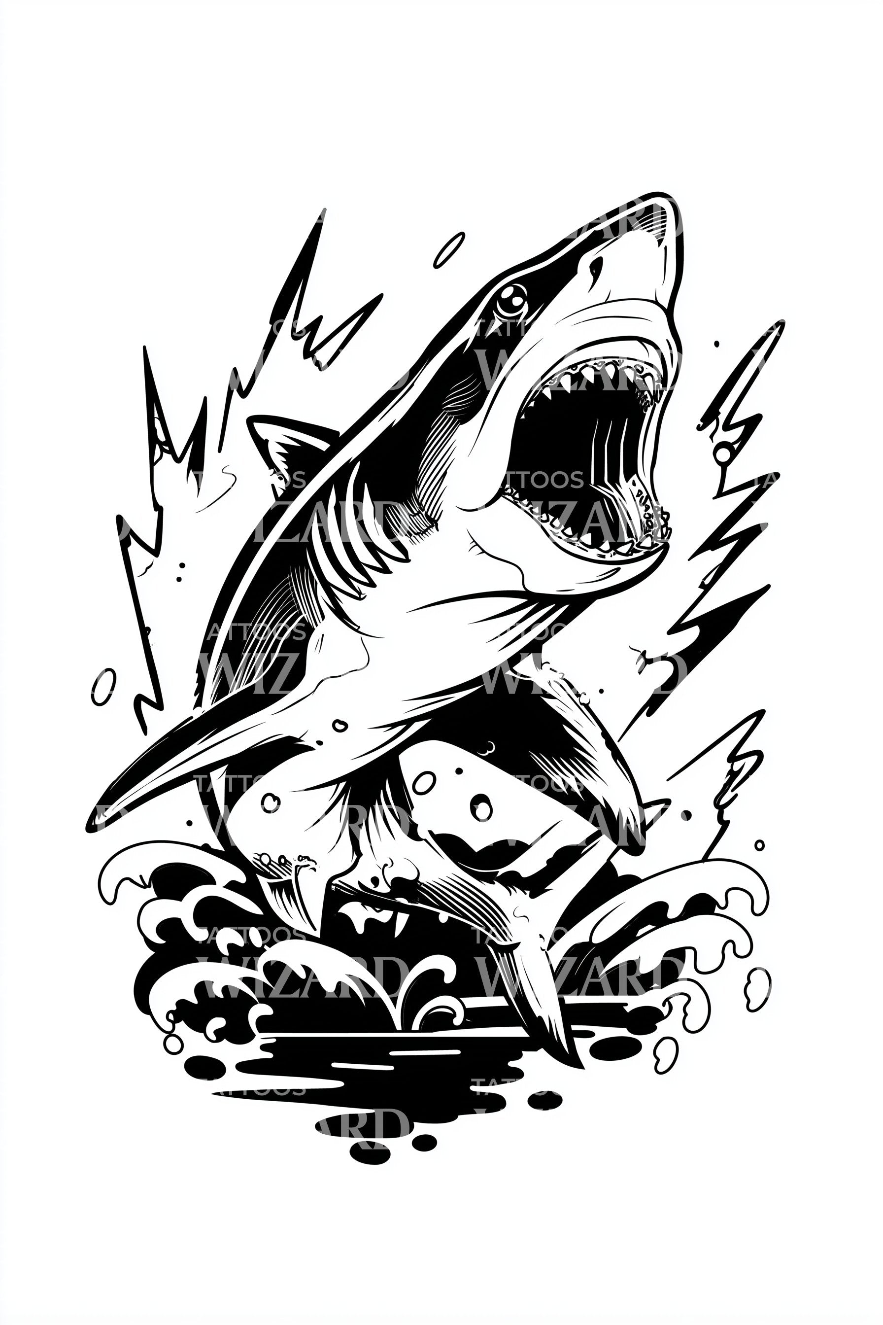 以这款新潮鲨鱼纹身设计,勇敢表达力量。充满活力,展现出锋利且飞溅的鲨鱼,象征着统治力与力量。反映海洋的原始力量,这一设计捕捉了新潮艺术的生动精神。非常适合无所畏惧地生活的你。
