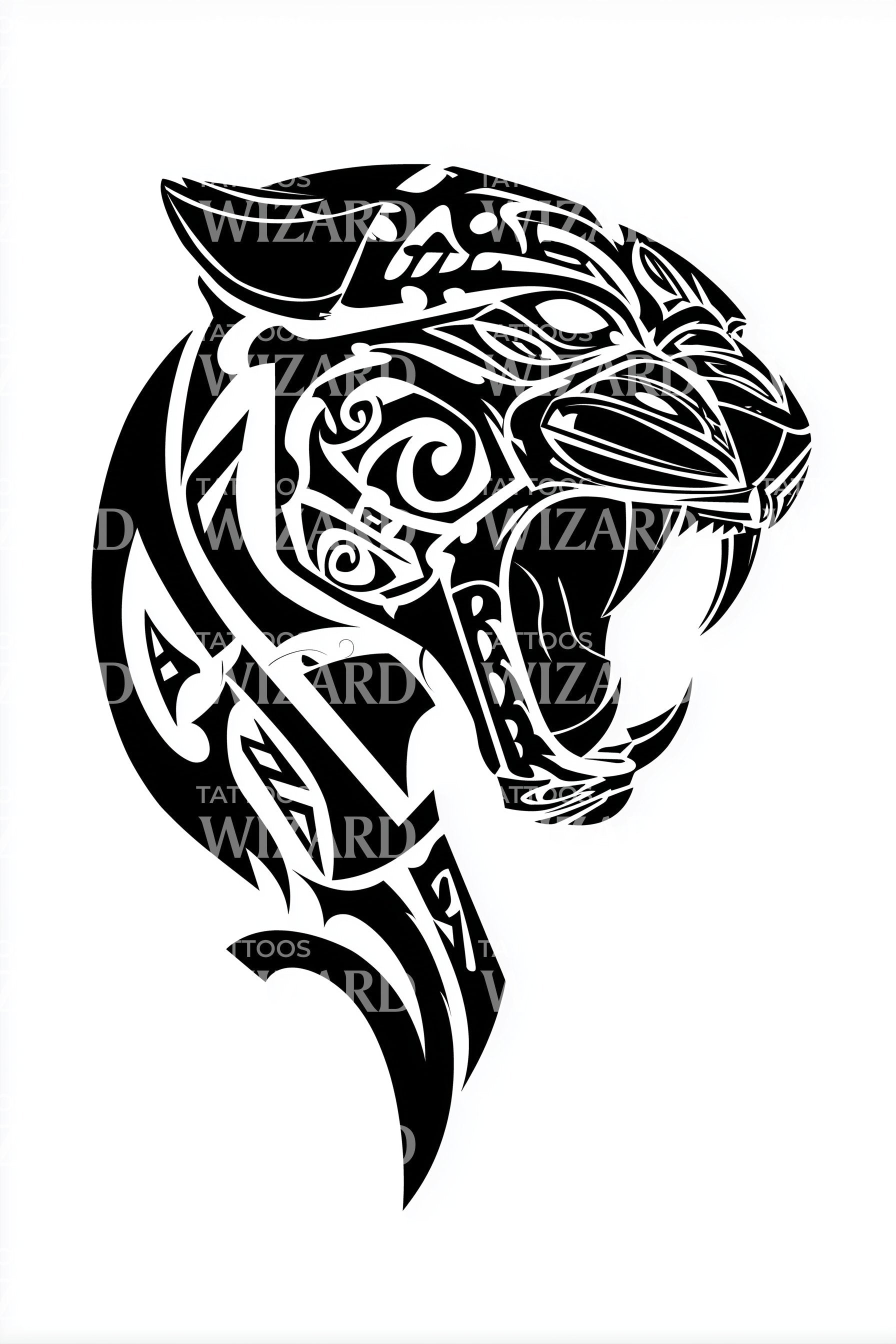 释放你狂野的一面,这款咆哮的部落虎纹身设计。以引人注目的侧面视角巧妙打造,这个设计散发出凶猛与力量。展现出令人印象深刻的部落细节,完美适合那些想要无声宣示自己力量与无畏的人。