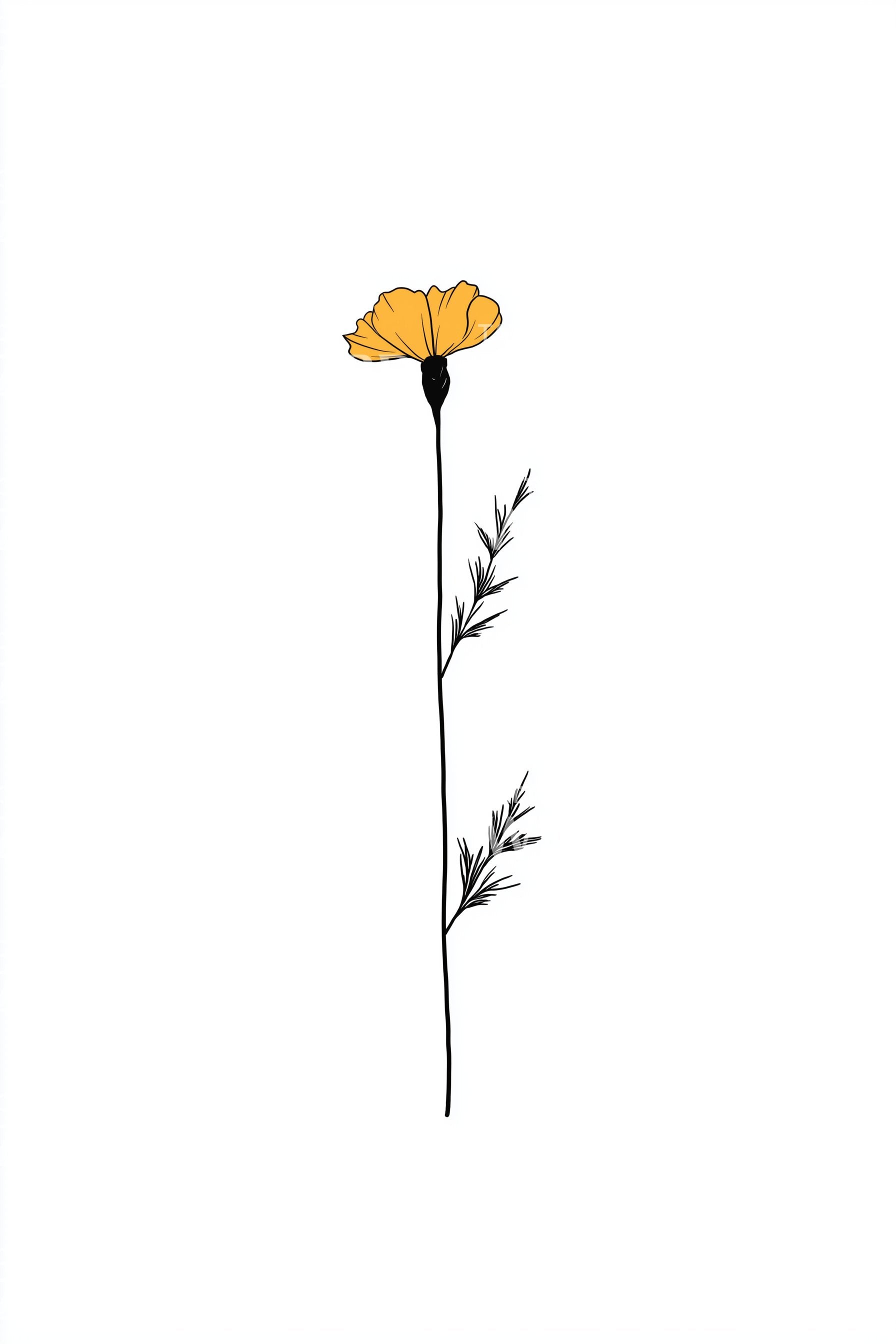 体验自然与艺术的交汇,这款极简花卉纹身设计以单一纤细的花蕾为特色,其简约却意味深长。非常适合偏爱极简风格的您,这一设计通过对植物的细腻描绘,展现出优雅与韵味。