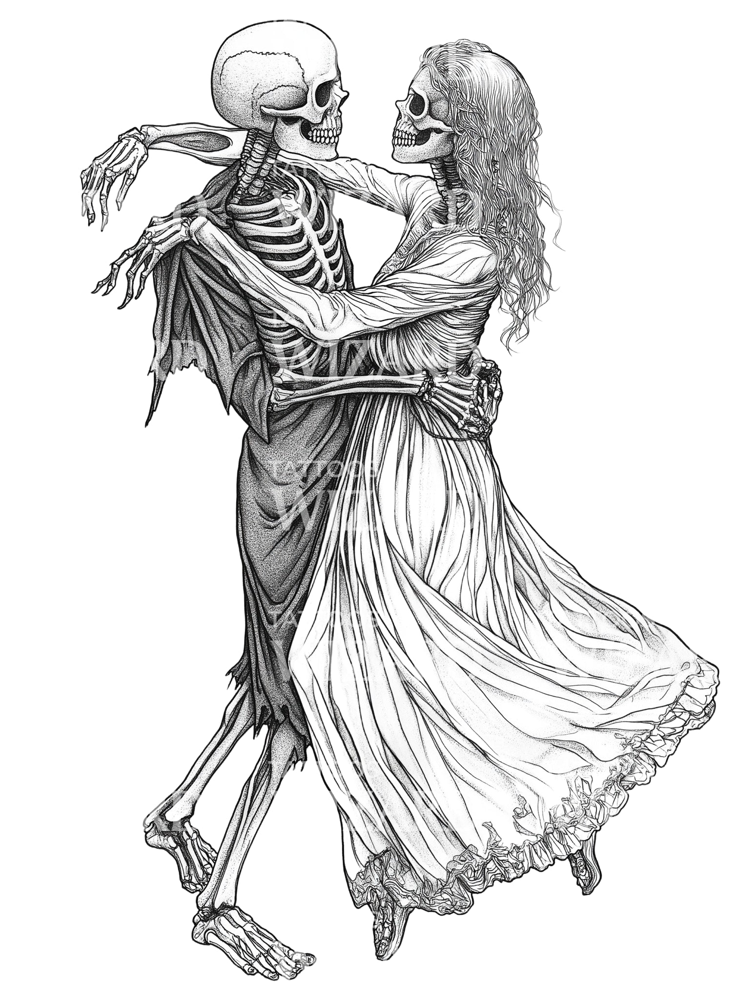 探索爱与死亡的永恒舞蹈,这款惊艳的黑灰色纹身设计。精美制作的骷髅象征着生命的短暂本质,而浪漫元素则强调了爱的永恒本质。这是一件富有意义的艺术作品,强调了存在的永恒节奏。