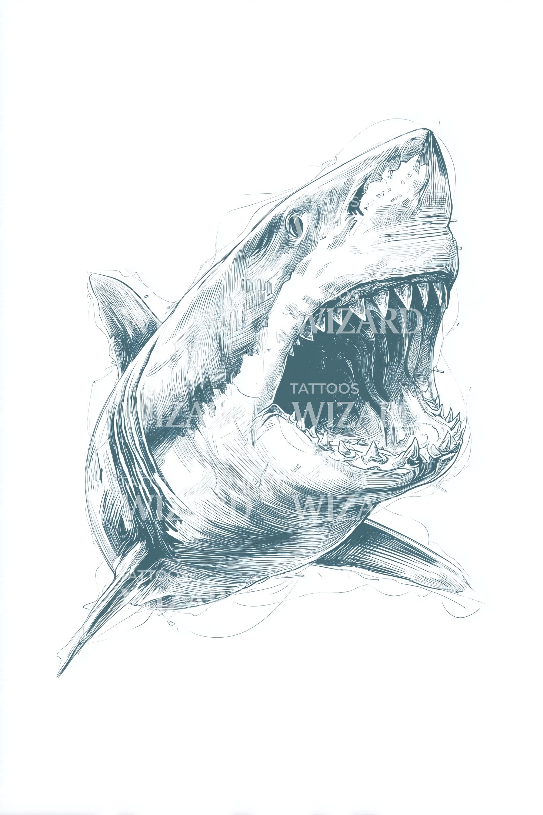 沉浸于极简主义艺术世界,这款素描风格的纹身设计。黑灰色的鲨鱼轮廓象征着力量与无畏。精雕细琢,致敬海洋的壮丽。非常适合欣赏简约而引人注目的身体艺术的你。
