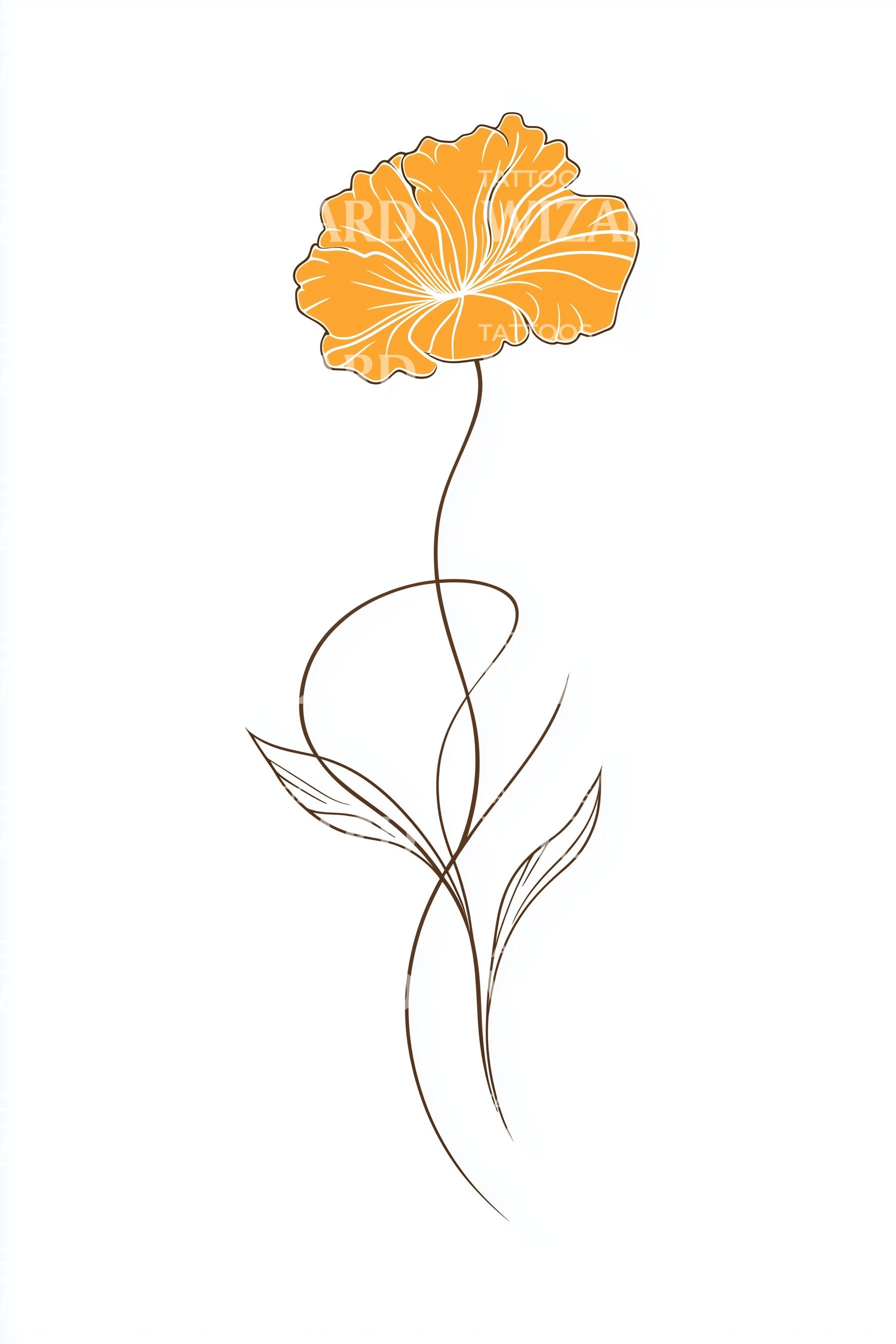 用这款精致的细线纹身设计展现你对简约的热爱。设计以柔和的橙色调描绘了极简风格的罂粟花。通过这款纹身散发出低调而时尚的魅力,将罂粟花的柔美与细线艺术的精致完美融合。