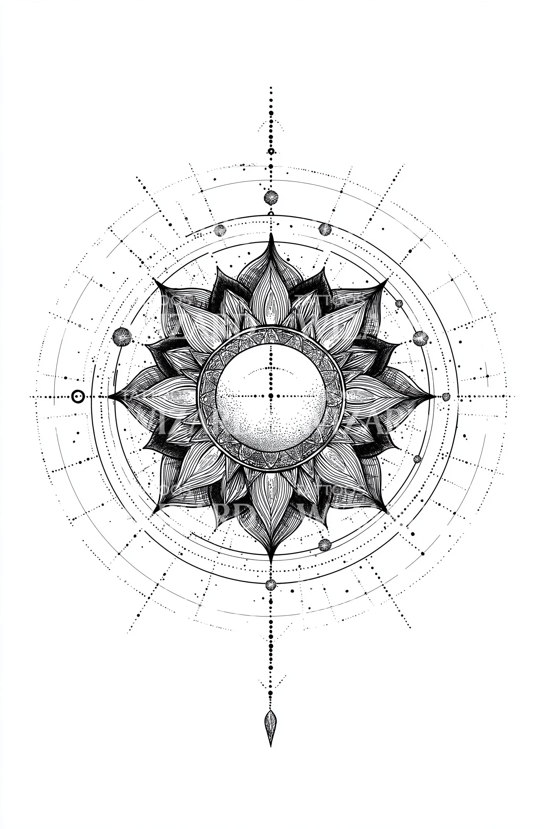 太阳曼陀罗莲花纹身设计
