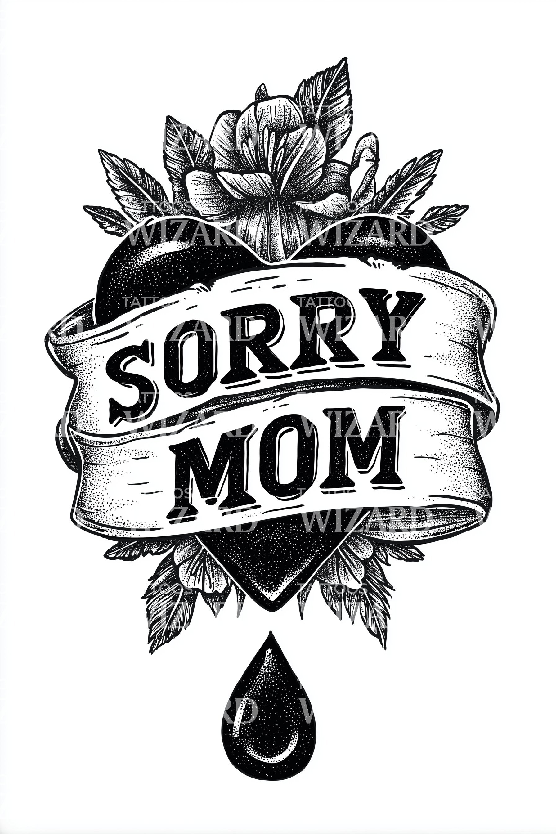 沉浸于怀旧之情,这款经典的老派纹身设计。以真挚的“Sorry Mom”横幅为特色,这件作品通过优美的字体表达了歉意。罪疚与魅力的永恒融合,为任何叛逆的灵魂带来独特的表达。
