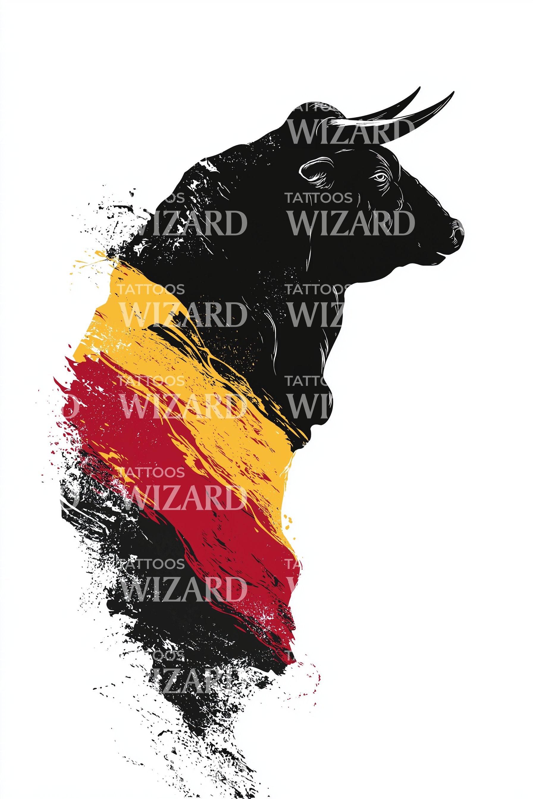 沉浸于德国精神,这款充满活力的水彩纹身设计。德国国旗以大胆的黑色、红色和黄色色调精美呈现,刷笔笔触技法赋予艺术般的抽象效果。为文化自豪或旅行灵感者打造的时尚宣言。