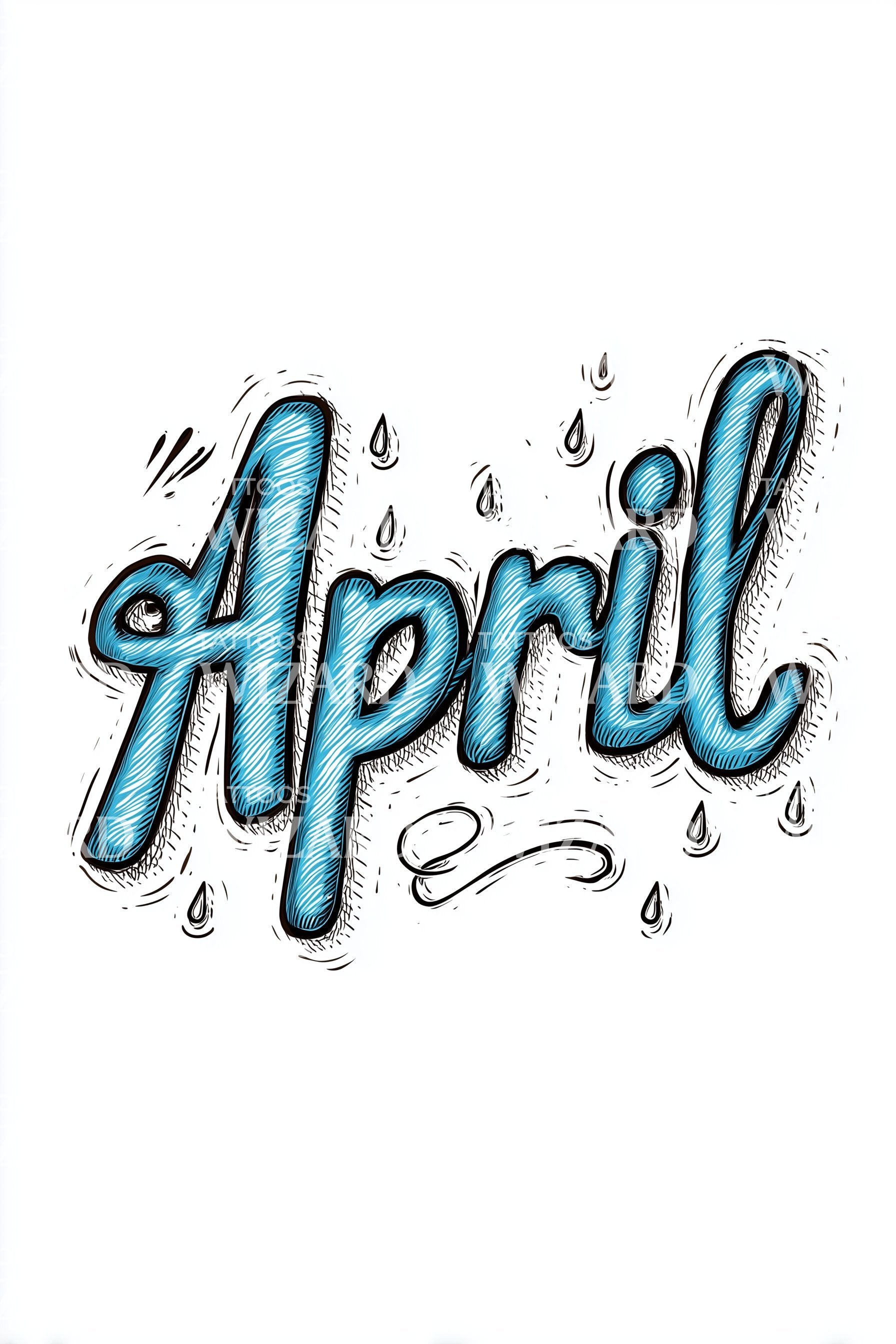 Electric blue script bursts into April, a juicy newschool lettering style edged with inky sketchlines and subtle sparkle. Raindrop accents echo April showers, symbols of cleansing, patience, and fresh growth. Wearing it feels like a glitter-laced restart, playful and bright, a personal pledge to bloom again each day.
