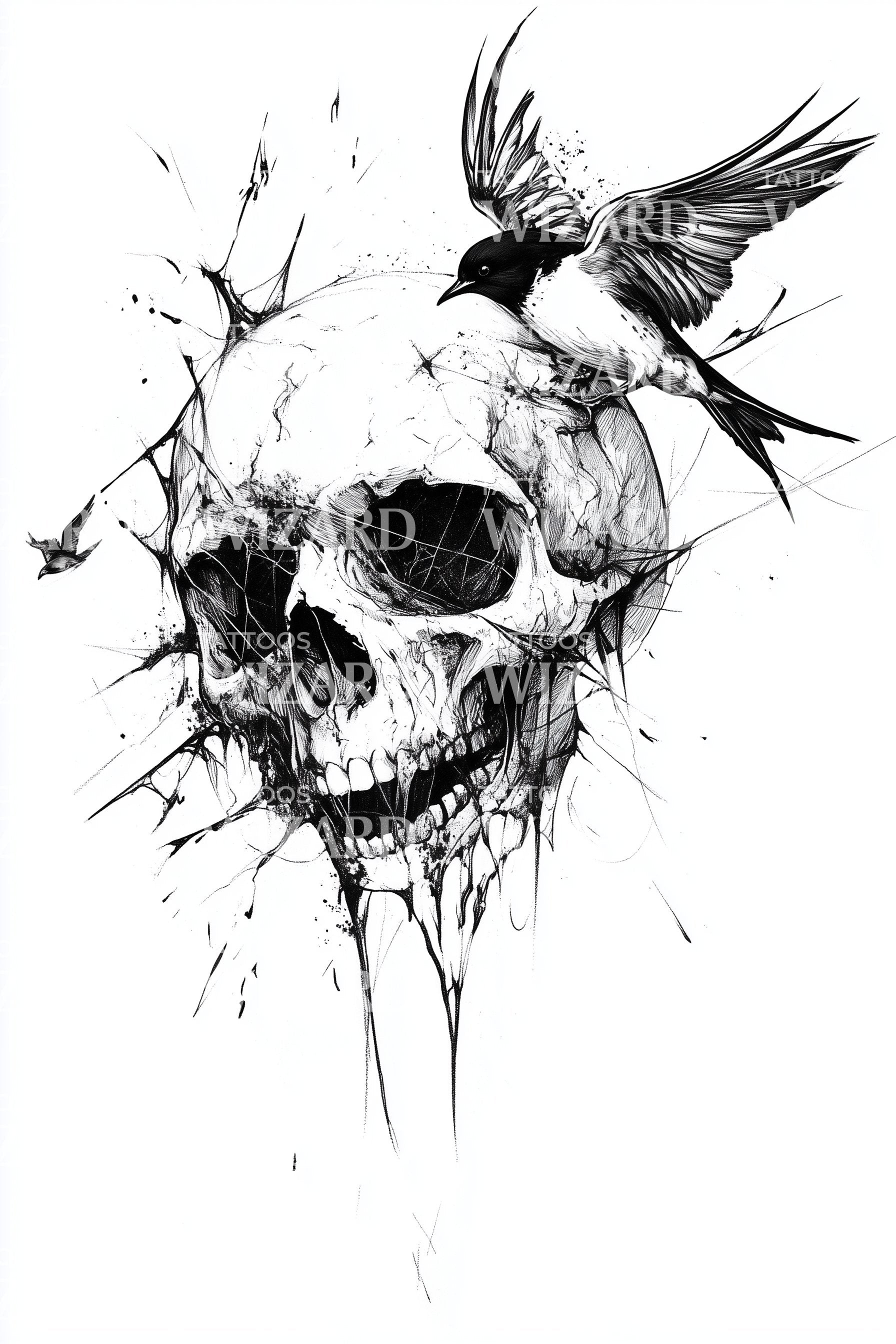 麻雀头骨素描纹身设计