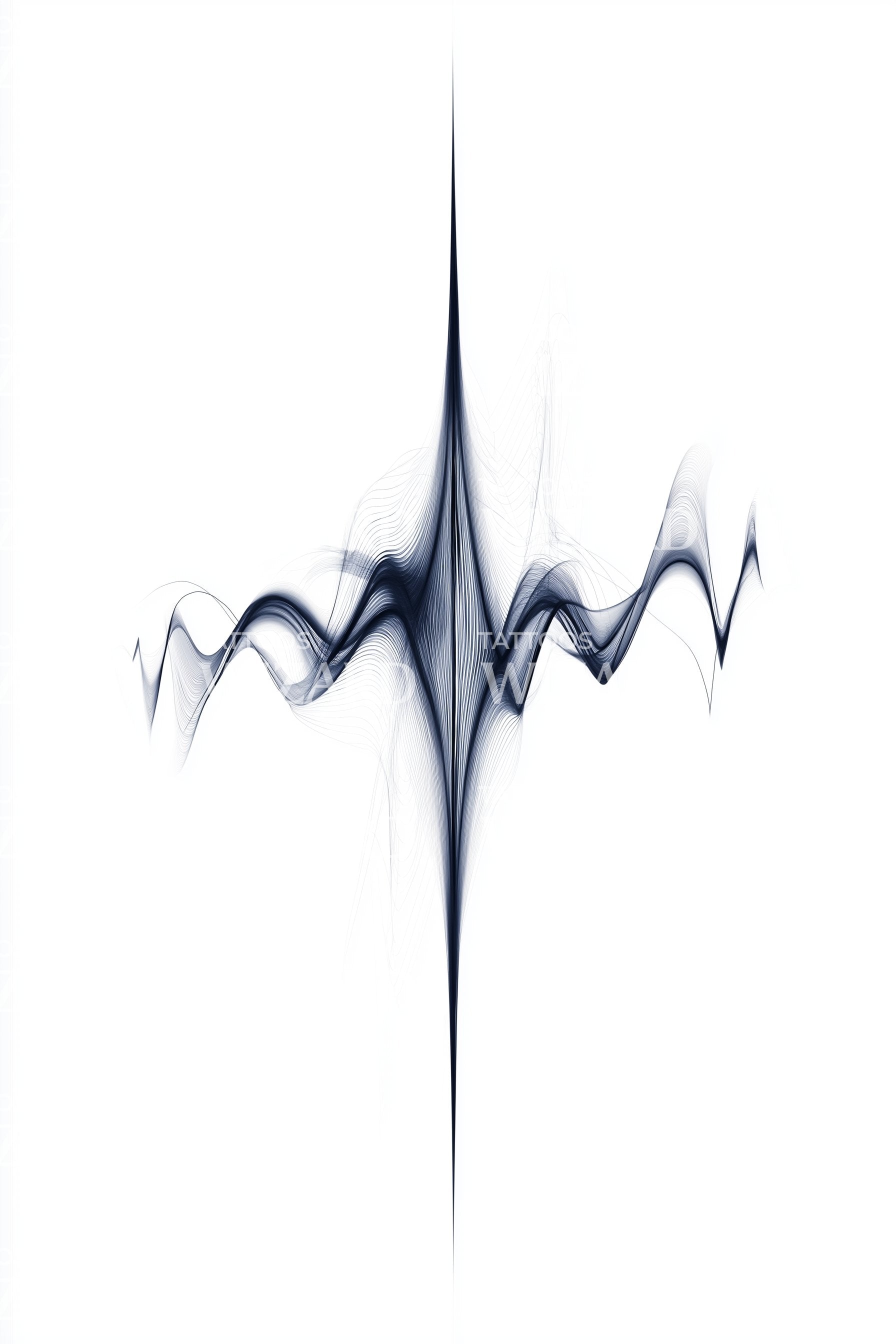 Spectral ink renders a sweeping wave, an abstract graphite-blue sketch of fine lines converging into a sharp spine, then drifting into airy motion. Symbolizing energy in flux and the pulse between chaos and calm, it carries a reminder to ride vibration with grace, feeling lucid, alert, quietly unstoppable.