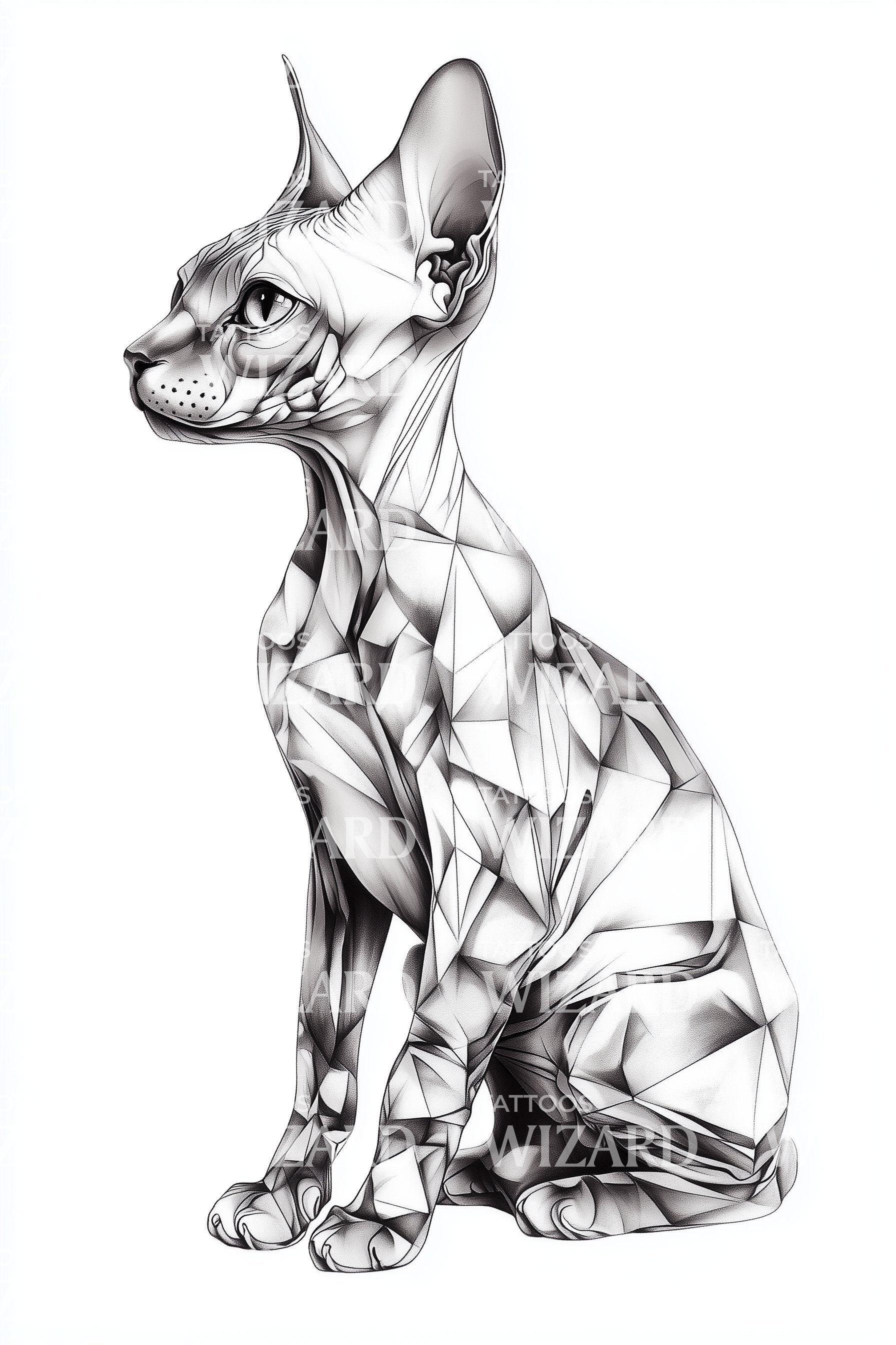 释放你对艺术与宠物的热爱,选择我们现代风格的无毛猫纹身设计。采用独特的几何素描风格,精心绘制直线与曲线,打造出极具时尚感和现代感的你心爱猫咪形象。非常适合追求独特前卫美学的宠物爱好者。