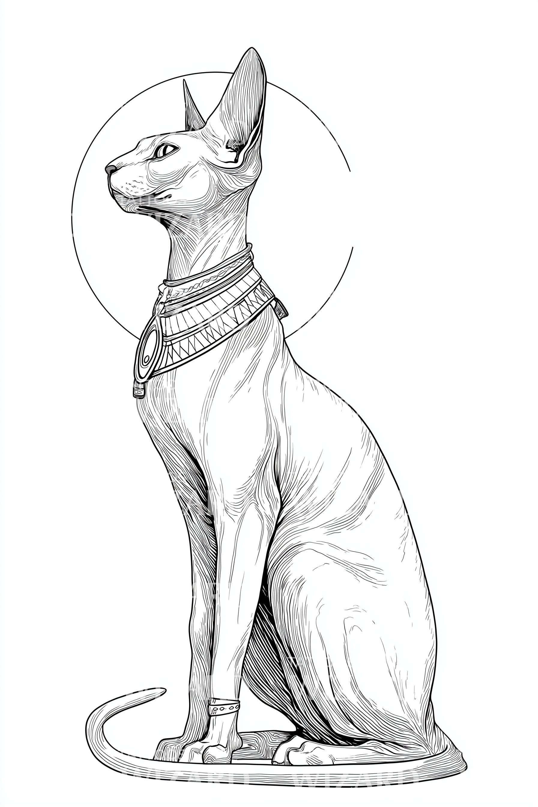 细线优雅勾勒出一只威严的狮身人面像侧影,佩戴宝石项圈,简约光环。象征守护、忠诚与古老智慧,以神圣的姿态纪念心爱的宠物。传递出宁静的自信与保护感。理想位置:前臂适合垂直流线;小腿展现长度;肋骨体现亲密;上臂用于构图框架。