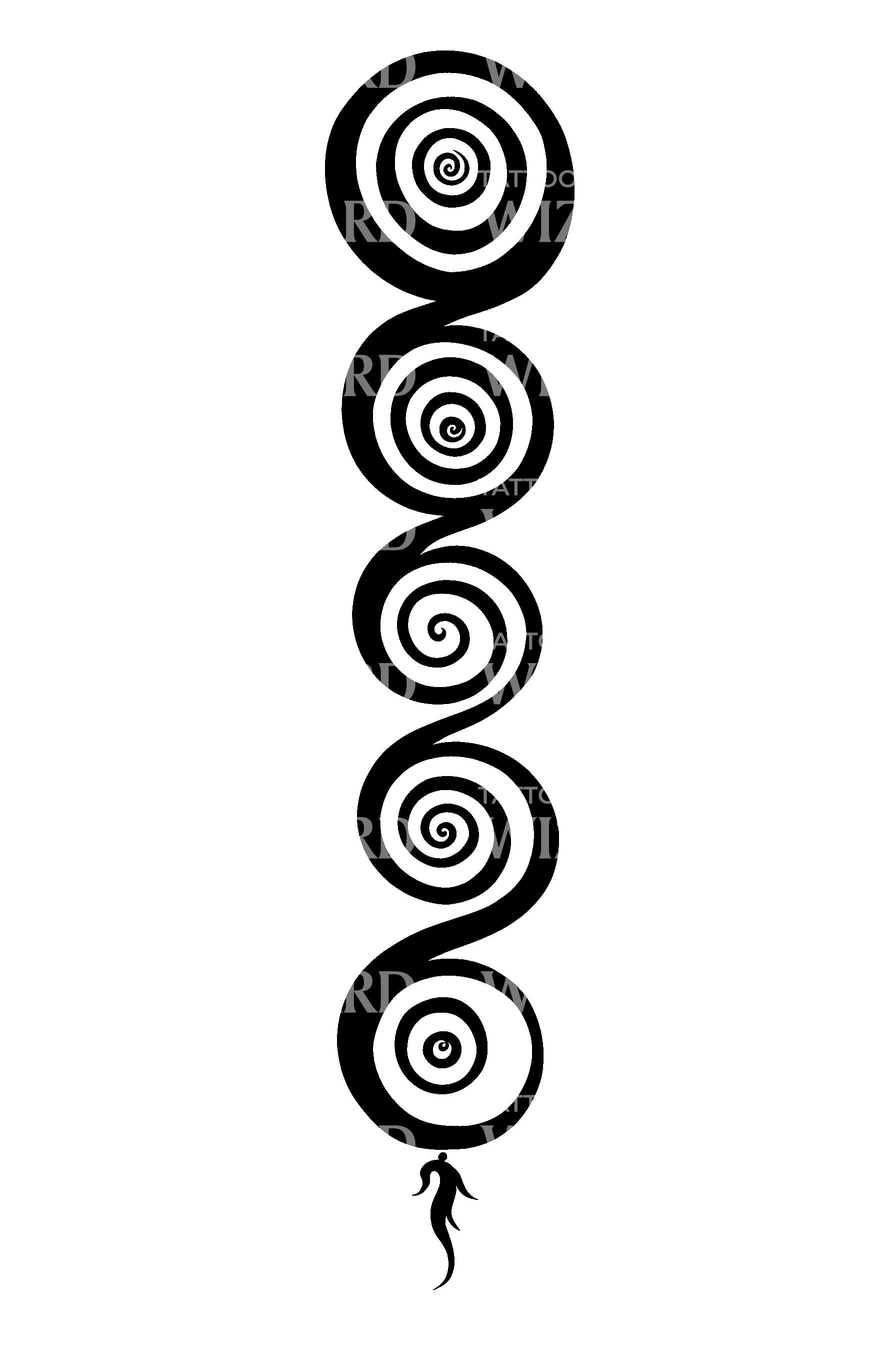 沉浸于这款几何纹身设计中错综复杂的螺旋和圆圈。象征图腾或护身符,散发着神圣几何的气息。非常适合追求极简却视觉冲击力强的设计者。用这款迷人的纹身,携带属于你自己的神秘象征。