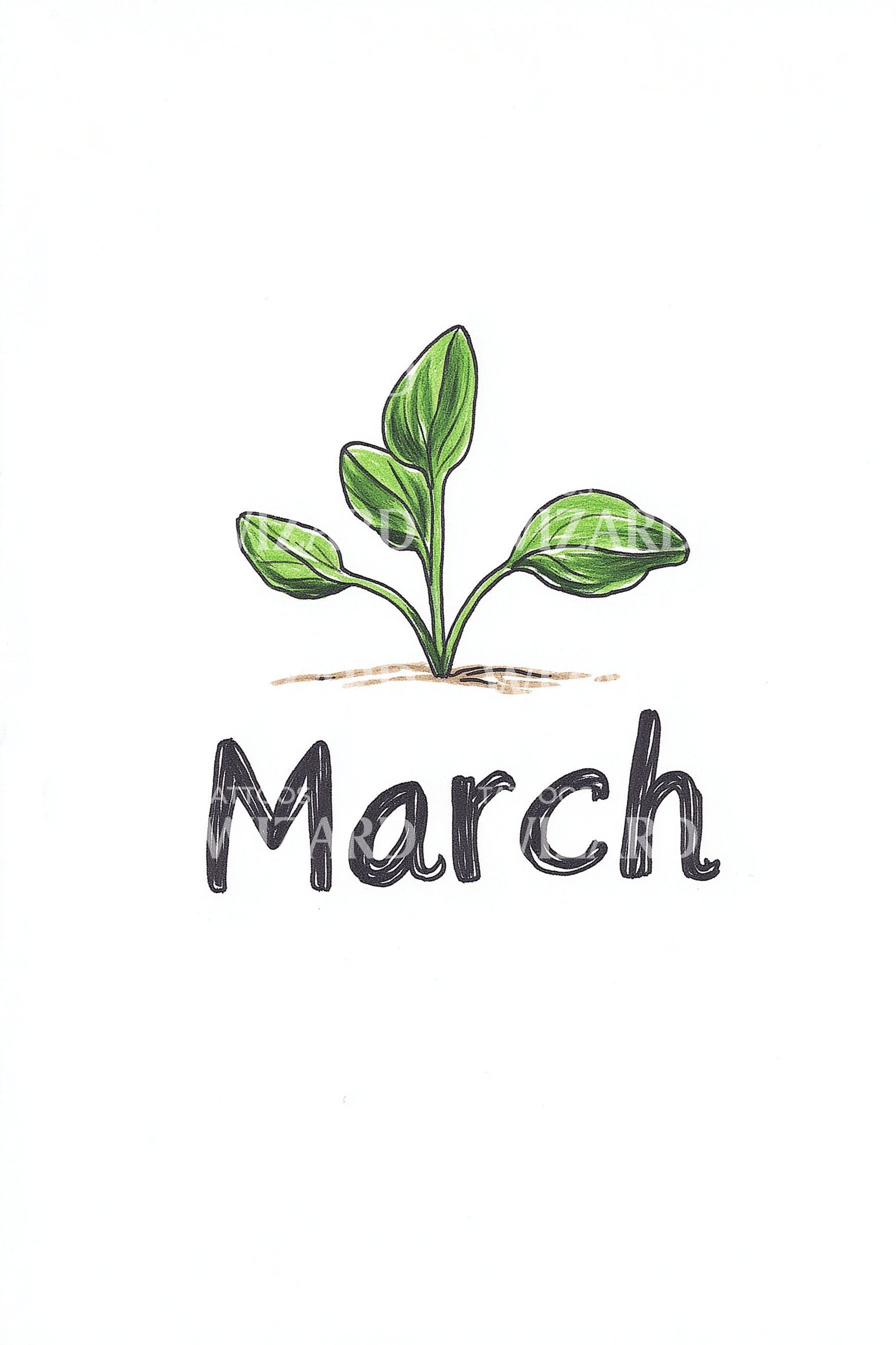 March sprout, inked in clean lines and soft greens, emerges from a quiet patch of earth above simple handwritten lettering. A symbol of first light, resilience, and starting again, it marks the month where seeds whisper yes. Worn daily, it feels calm, hopeful, gently propelling growth toward renewal.