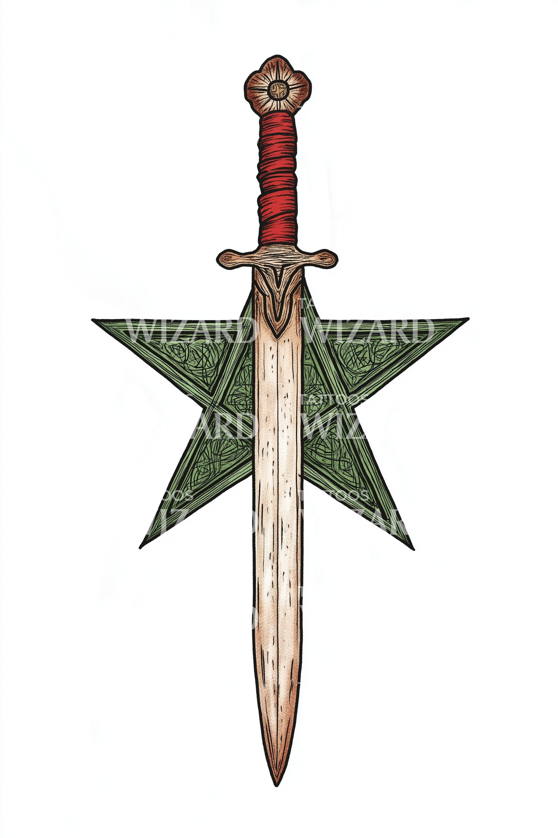 一把富有表现力的摩洛哥匕首展开,成为一枚华丽的徽章,其弯曲的刀刃上雕刻着几何形状的zellige。绿色的五角星点缀于刀柄之上,呼应着摩洛哥的文化遗产和沙漠夜空。均衡的线条与细腻的阴影勾勒出一枚大胆而永恒的护身符——既是保护,也是故事。根植于旅行与传统。