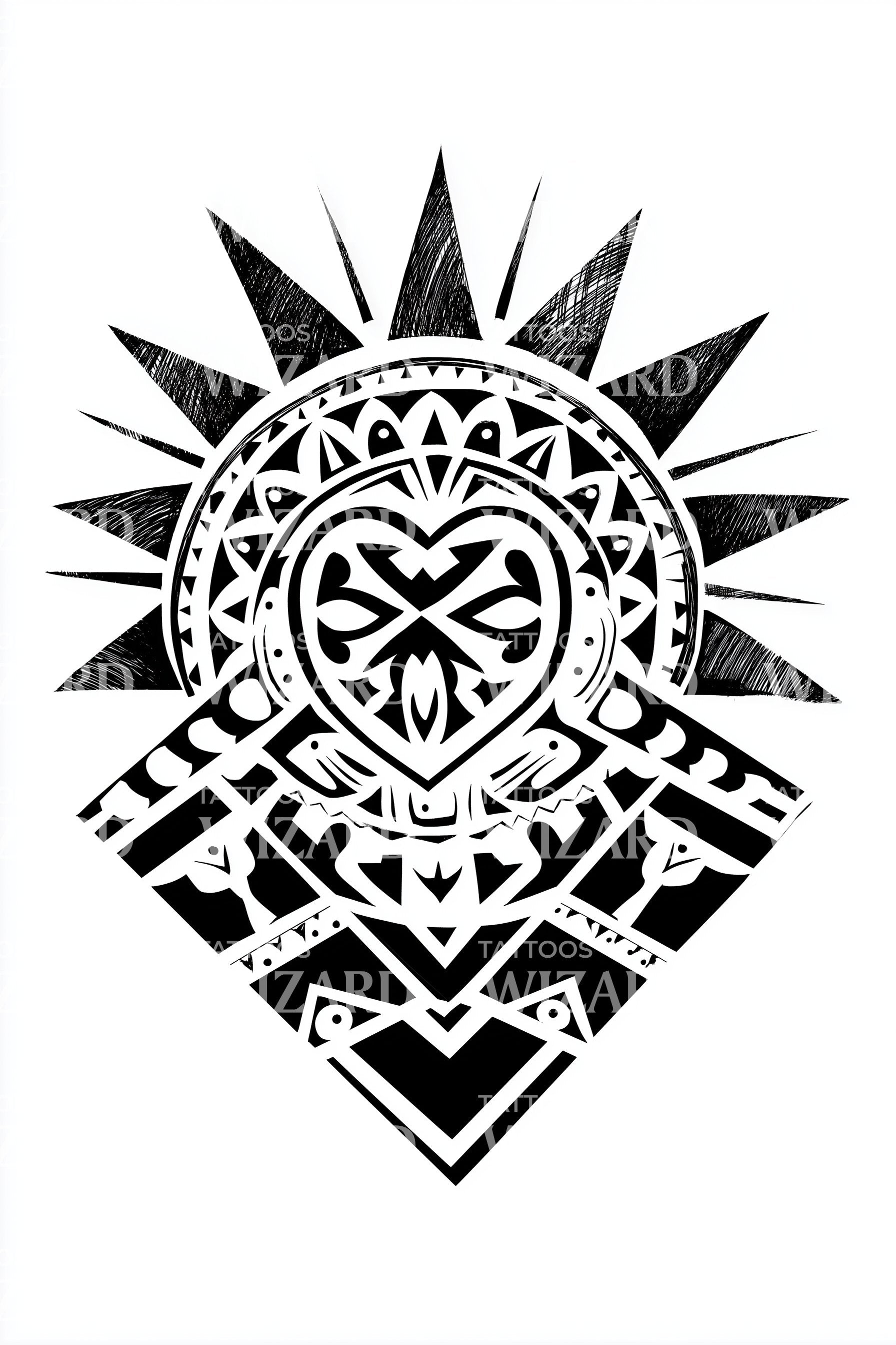 体验部落艺术与宁静曼陀罗图案的融合。灿烂的日光与温柔的心形象征着激情,而复杂的曼陀罗设计则展现独特光彩。这是一种民族风情的结合,以醒目的方式体现宁静与充满活力的能量。