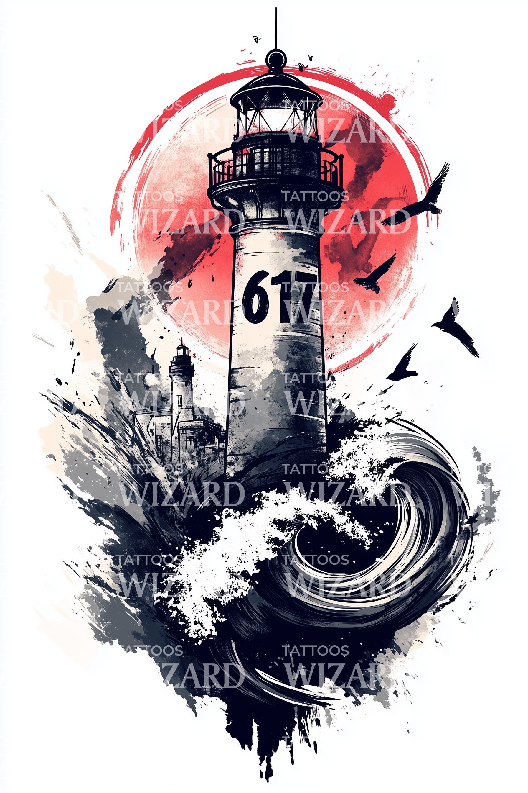 Boston 617 Sunrise Lighthouse Tattoo Idea