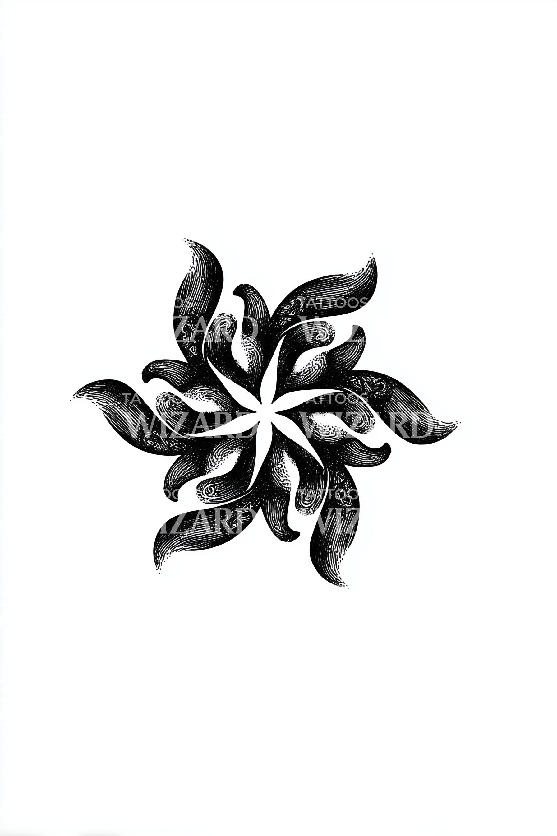 深入探索这款部落纹身设计中复杂的文化融合。展现出黑色漩涡和螺旋的迷人舞动,这个设计将在你的肌肤上绽放如异域花朵。蕴含部落风格,它确实是一种引人注目的美学宣言。