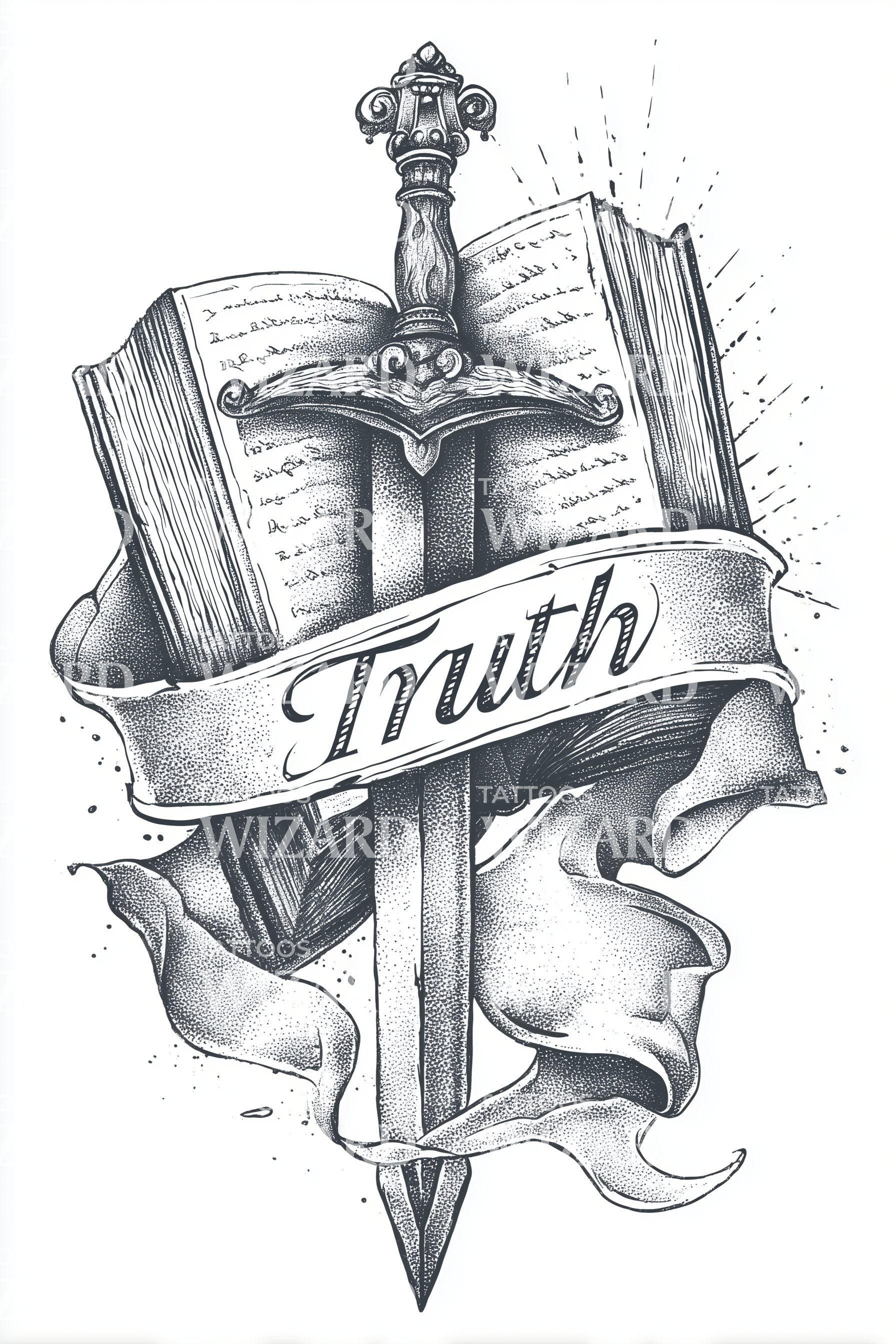 真理横幅剑纹身设计
