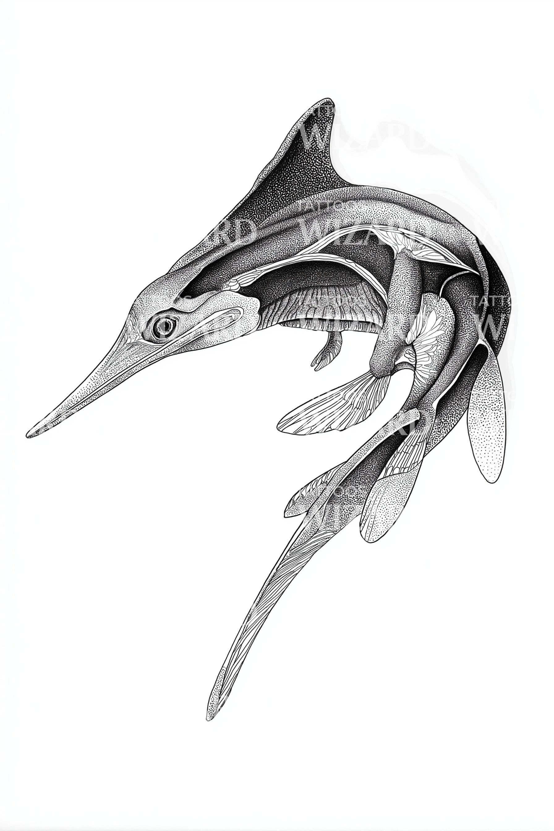 Dynamic Swordfish Dive Tattoo Design