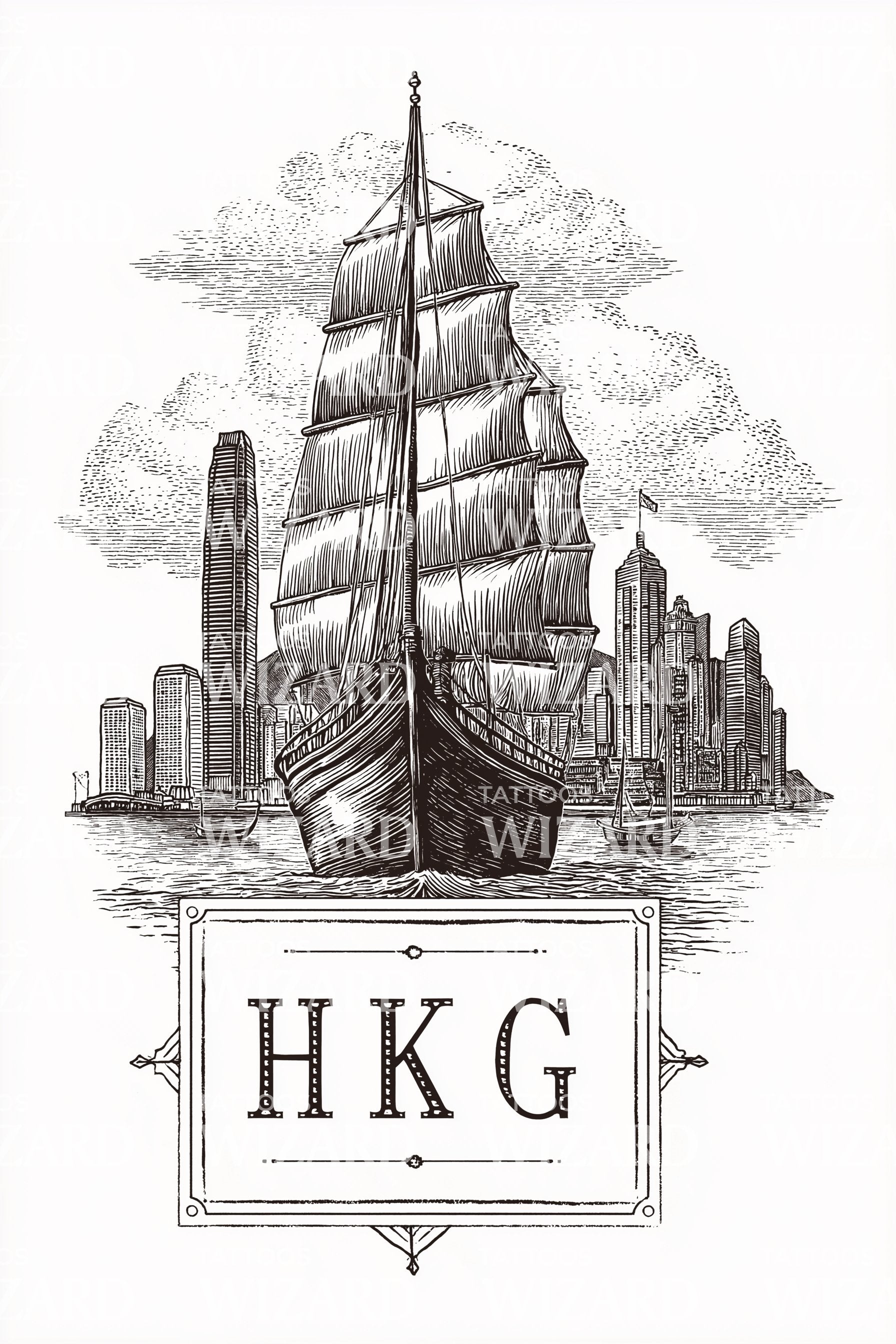 Hong Kong HKG Tall Ship Tattoo Illustration