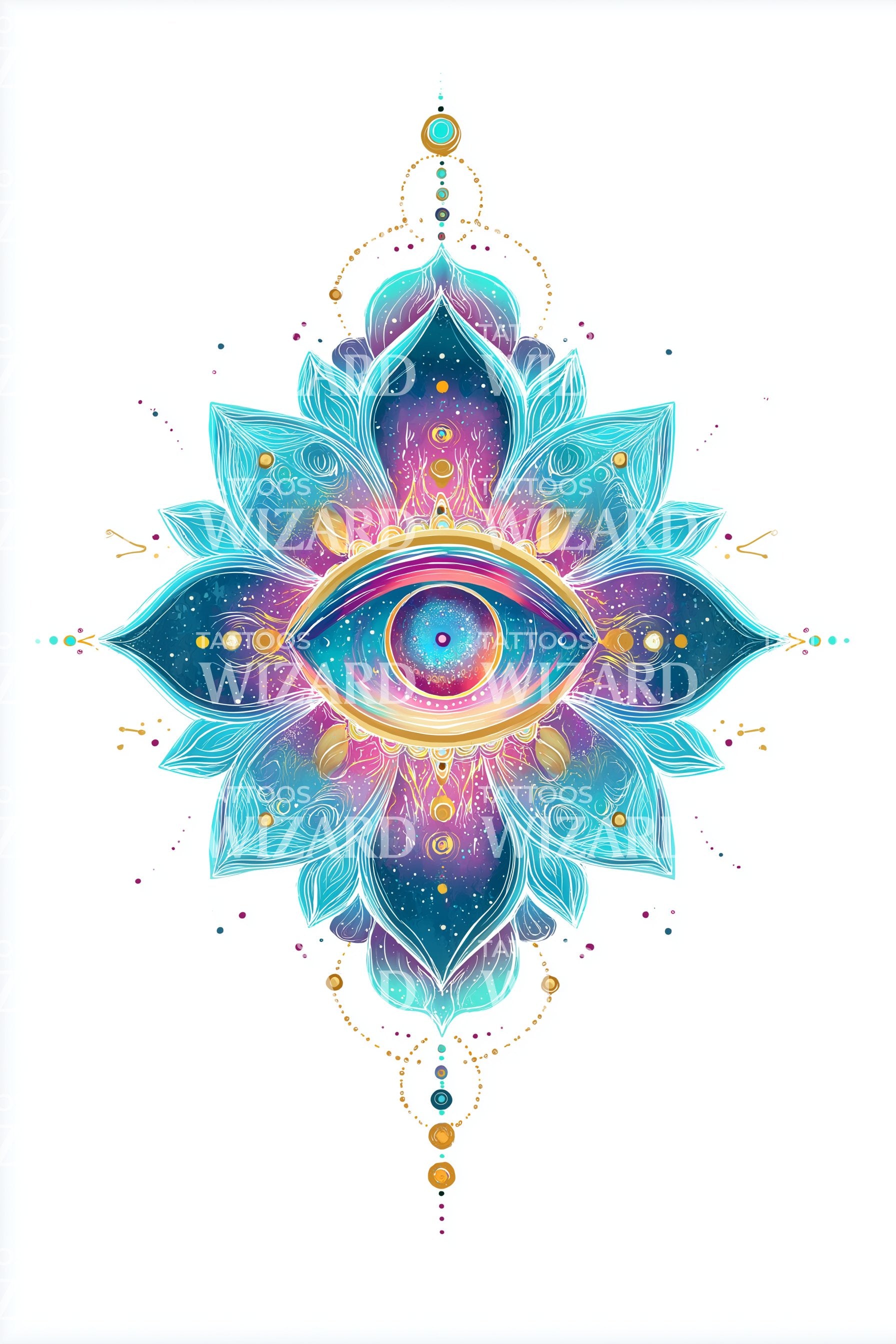 揭示你精神层面的内在,这款复杂的曼陀罗纹身设计。一个引人注目的眼睛作为焦点,镶嵌在青绿色调和几何图案中——散发出神秘感。其装饰艺术将吸引观众,将皮肤变成深邃智慧与美丽的画布。