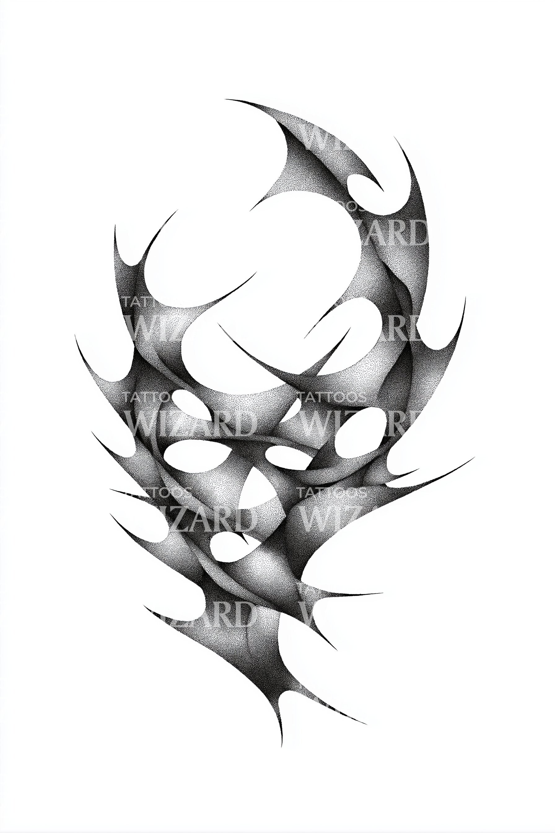 释放你个性中锋利而神秘的一面,选择我们的黑色纹身设计。它以有机抽象的荆棘、爪子和尖刺图案为特色,呈现出明暗鲜明的对比。这件黑色艺术作品生动地展现了大自然最尖锐形态的原始而令人敬畏的美。