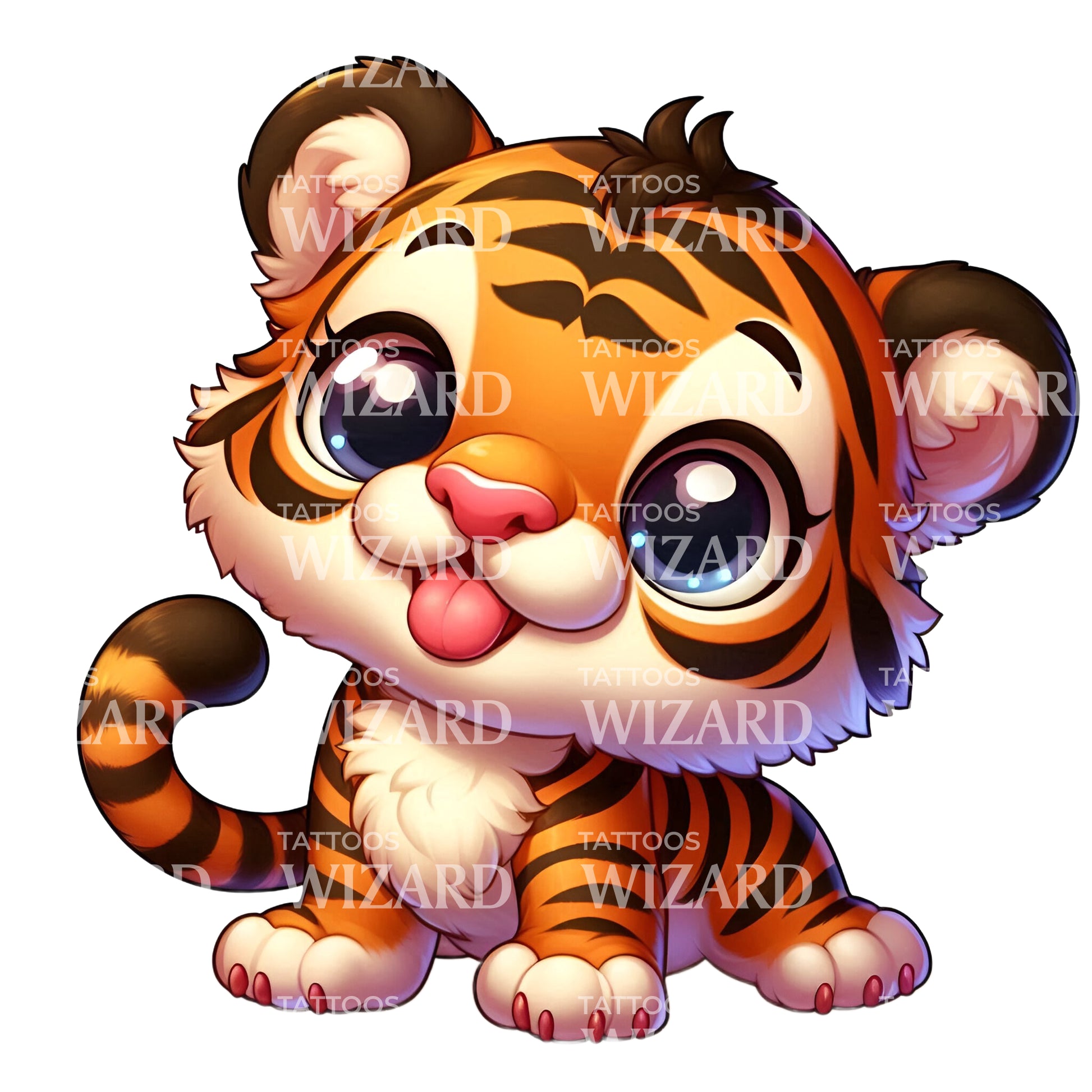 沉浸在这个插图纹身设计的迷人魅力中。它巧妙地以一只可爱、顽皮的小老虎为主题,视觉上令人着迷,捕捉了孩子和年轻心灵的想象力。唤起年轻的情感,这个纹身散发出不可抗拒的魅力,非常适合为你的风格增添一丝异想天开的快乐。