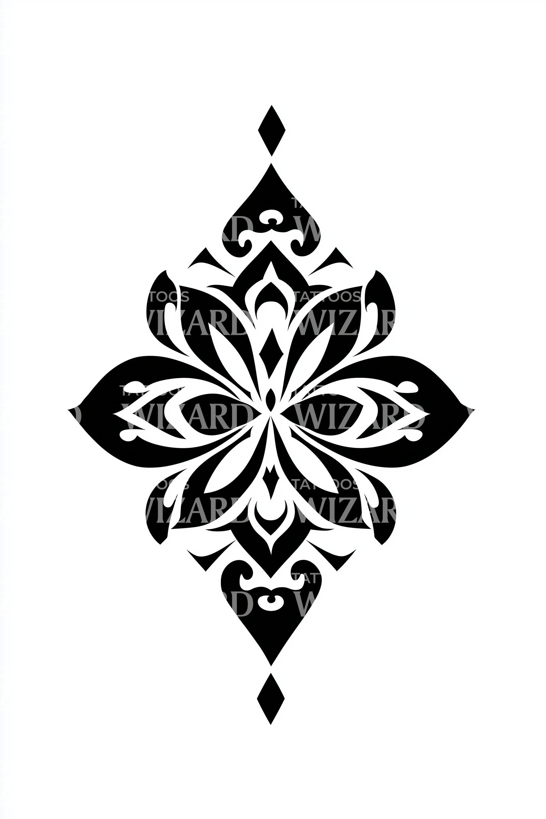 沉浸于传统之中,为您的身体艺术增添异域魅力,选择我们部落风格、莲花灵感的纹身设计。这款大胆的装饰作品展现了对称的花卉优雅,将古老美学与现代魅力完美融合。非常适合重视细节与大胆、永恒设计的您。