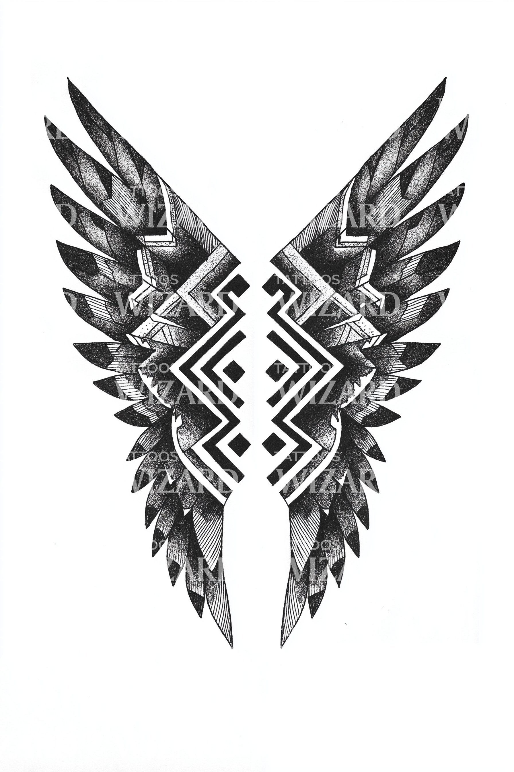 Tribal Zigzag Wing Pair Tattoo Design