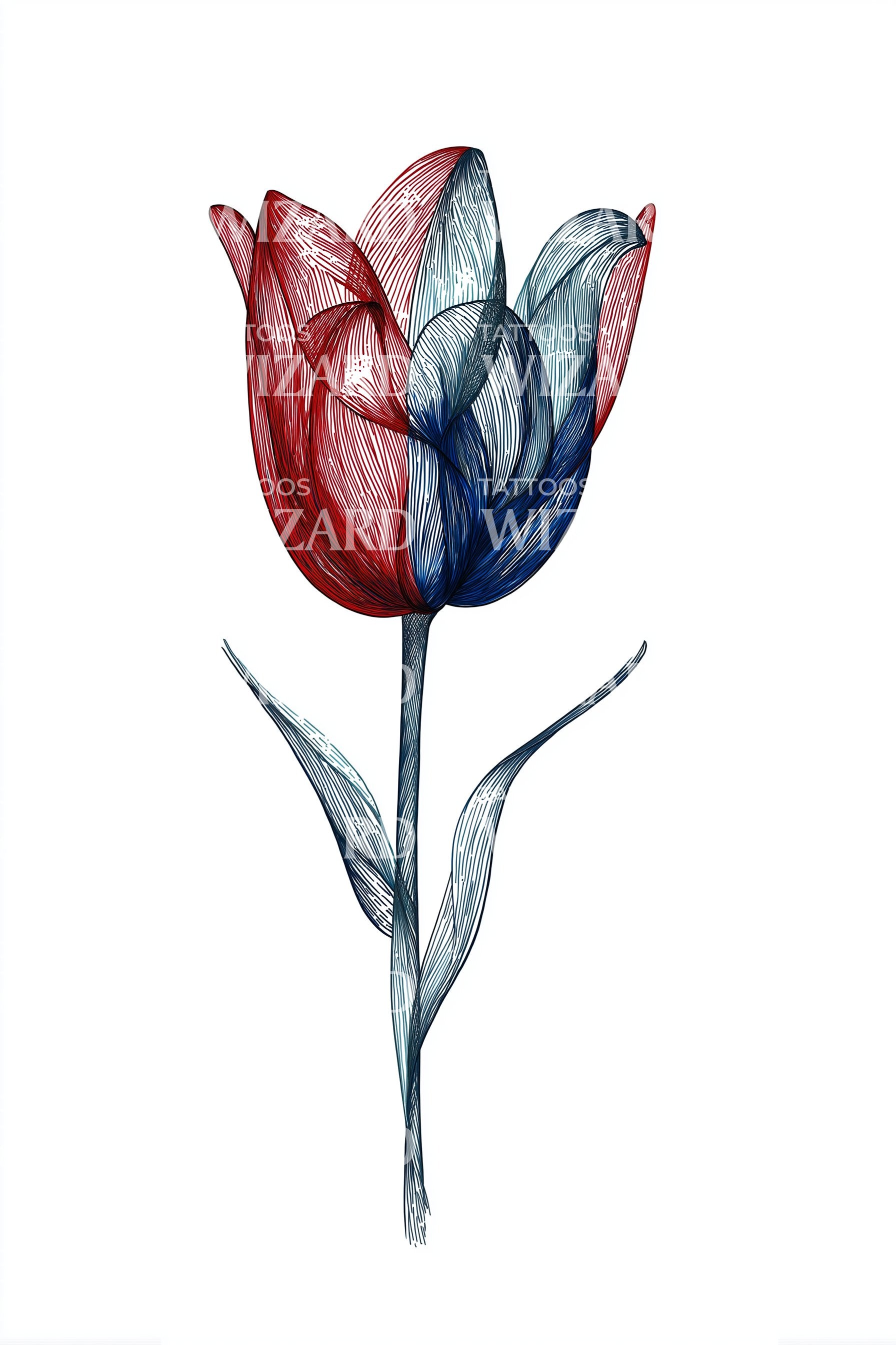 沉浸于法国的荣耀,这款极简纹身设计以郁金香为象征,代表完美的爱。巧妙地将三色旗融入优雅的花朵中,展现极简主义的细腻魅力。非常适合欣赏低调优雅和法国国旗象征魅力的您。