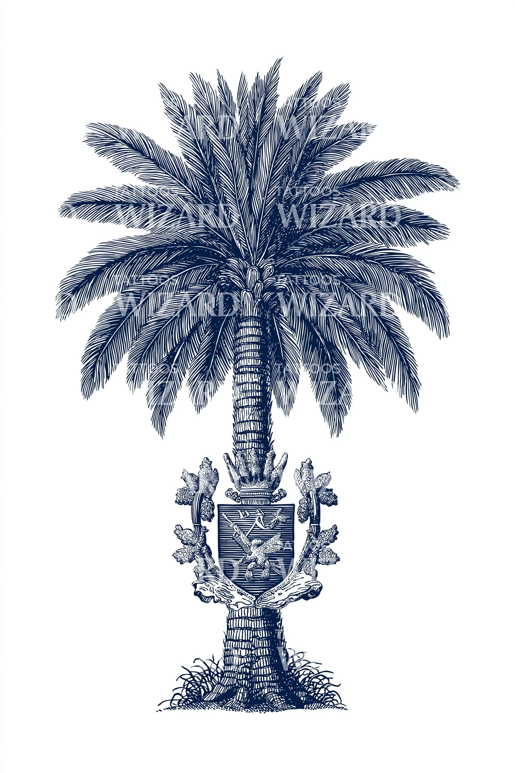 特克斯和凯科斯仙人掌棕榈纹身设计
